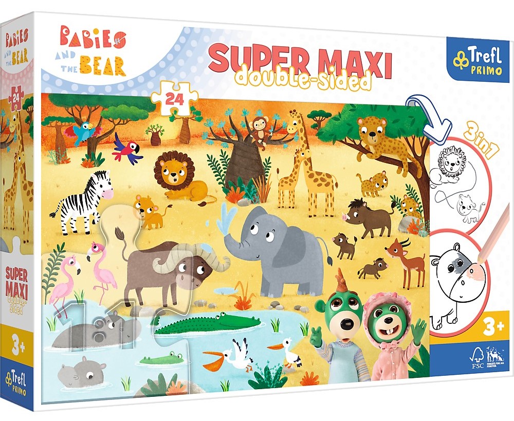 Puzzle 24 piese - Trefl Primo - Super Maxi - Babies and the Bear in Safari