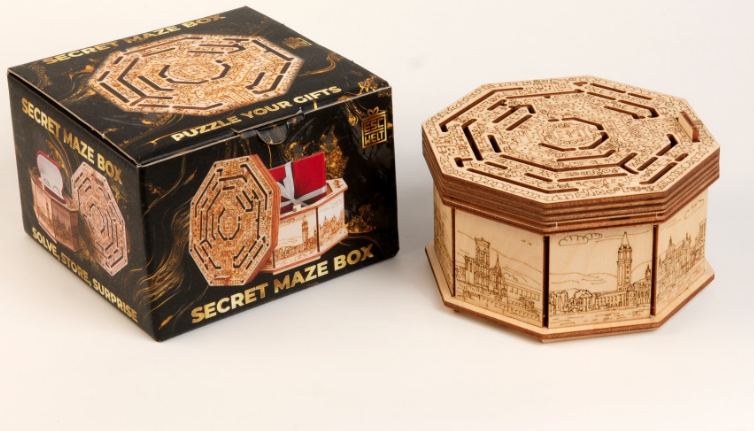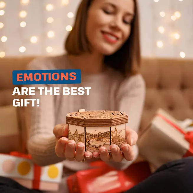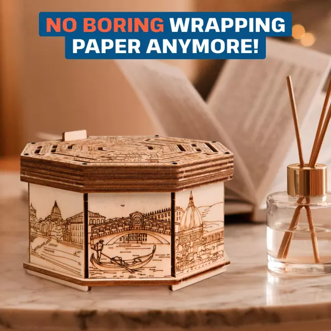 De asemenea, poți folosi Secret Maze Box ca un pachet original pentru cadourile tale: pe laterale există priveliști romantice ale Veneției atemporale.