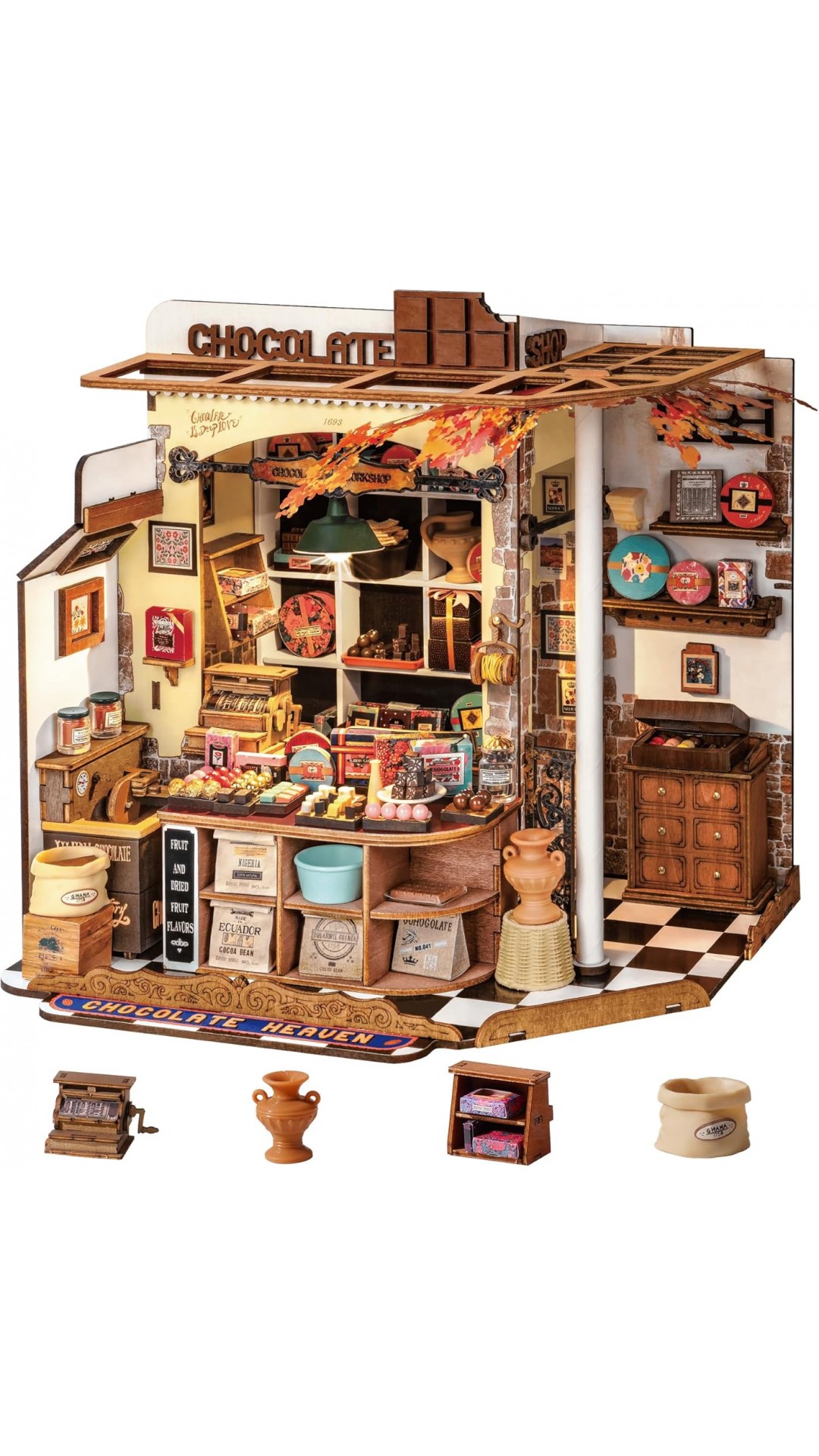 Asamblarea acestei mini lumi e ca și cum ai reconstrui o amintire dragă – un moment în care realitatea se topește și lasă loc imaginației. Fiecare detaliu prinde viață sub lumina caldă a lămpii, iar mirosul imaginar de ciocolată pare să plutească prin cameră.