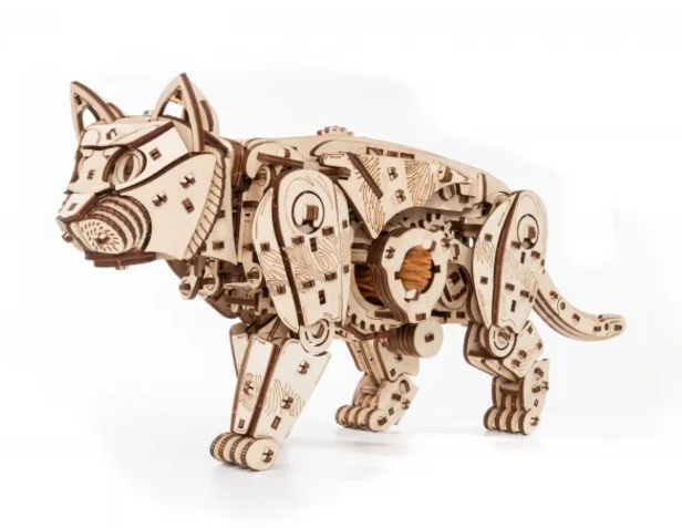 Puzzle mecanic 3D cu motor cu bandă de cauciuc al unei pisici care se plimbă cu mecanism de pornire/oprire și coadă flexibilă