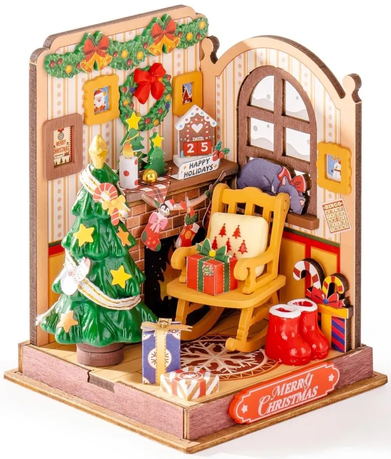 • Casa în miniatură minimalistă de Crăciun. Rolife prezintă o versiune mini special concepută a unei case de păpuși pentru acest Crăciun. Cu un teren acoperit de zăpadă, un șemineu confortabil în cameră și un acoperiș triunghiular împodobit cu un brad de Crăciun... Vă va însoți să vă bucurați de un Crăciun minunat.
