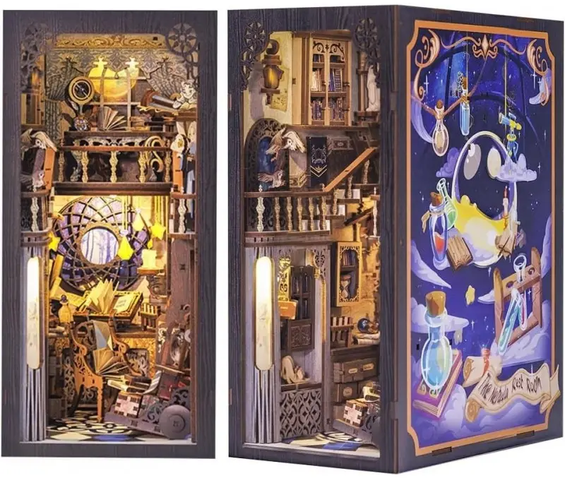 Pădurea din afara ferestrei, luminile magice ale stelelor, cărțile de pe masă și sticla cu poțiune magică, acesta ar trebui să fie studioul magic de vis al tuturor