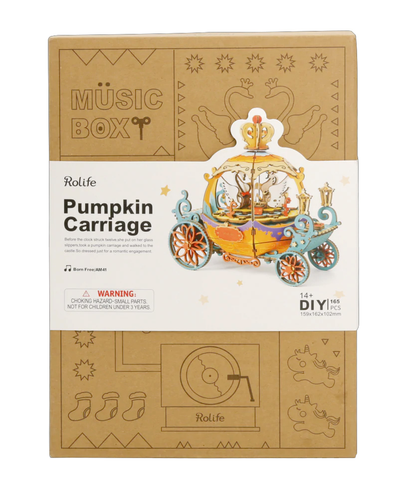 Puzzle 3D din lemn - Musical Box - Pumpkin Carriage, 165 piese