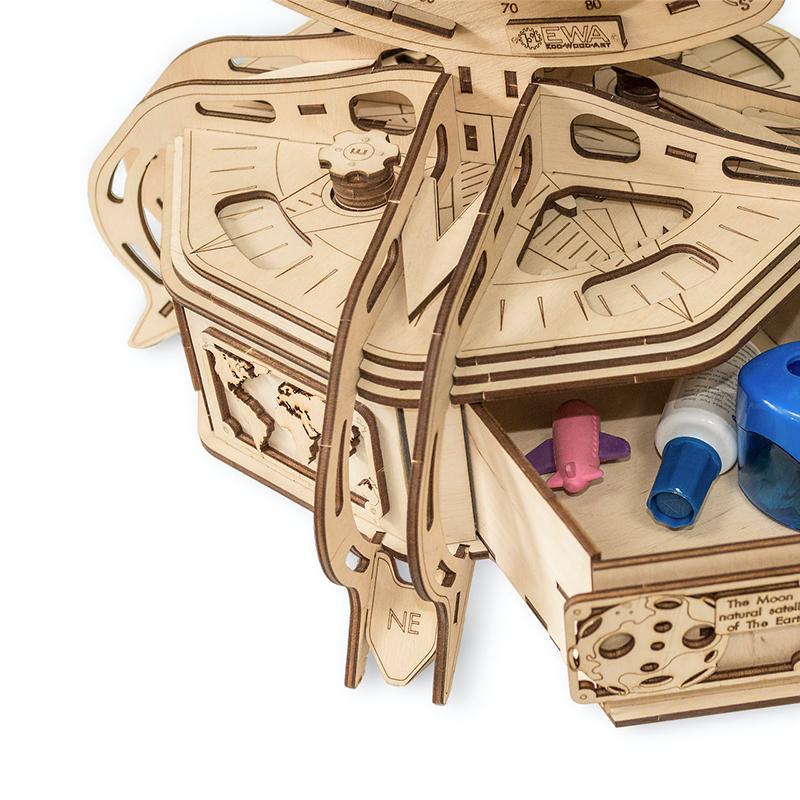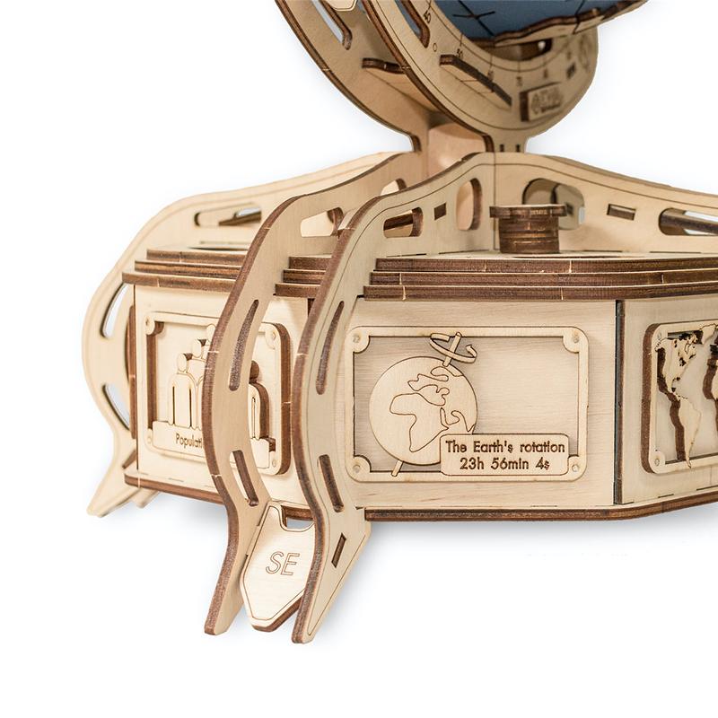 GLOBUL - puzzle educațional 3D mecanic pentru auto-asamblare. Modelul oferă oportunitatea de a asambla harta lumii geografice cu propriile mâini și de a afla despre Pâmânt datorită caracteristicilor principale ale planetei, care sunt incluse în set.