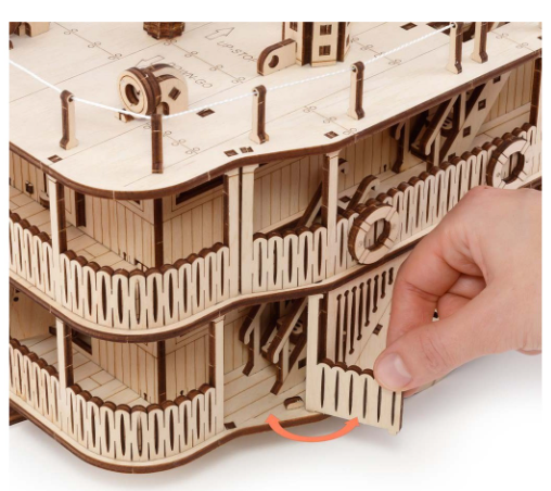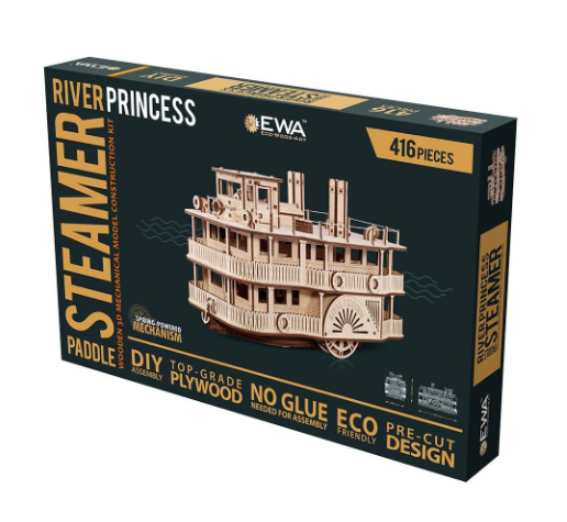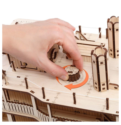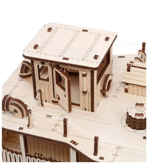 Setul de construcție din lemn – vaporul cu aburi „River Princess” va fi un cadou ideal pentru iubitorii de istorie, tehnologie și oricine apreciază frumusețea navelor cu aburi clasice. Pregătește-te să pleci într-o călătorie în timp și să creezi propria ta lume mică a erei vaporilor cu aburi. Descoperă secretul designului, arată-ți viziunea creativă și simțe-te ca un adevărat maestru al modelării – cu vaporul nostru „River Princess”!