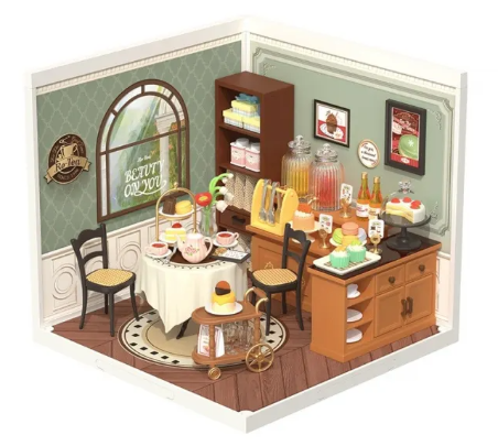 Rolife te invită să te răsfeți cu creativitate și rafinament în timp ce asamblezi această cafenea miniaturală. Ia-ți timpul necesar pentru a organiza toate elementele realiste, precum porțelanul fin, scaunele antice, dozatoarele de suc din cristal, micile cutii de cadou și deserturile intricate. Fie pentru tine, fie ca un cadou gândit cu drag, acest refugiu miniatural promite să fie o adăugare încântătoare în orice colecție.