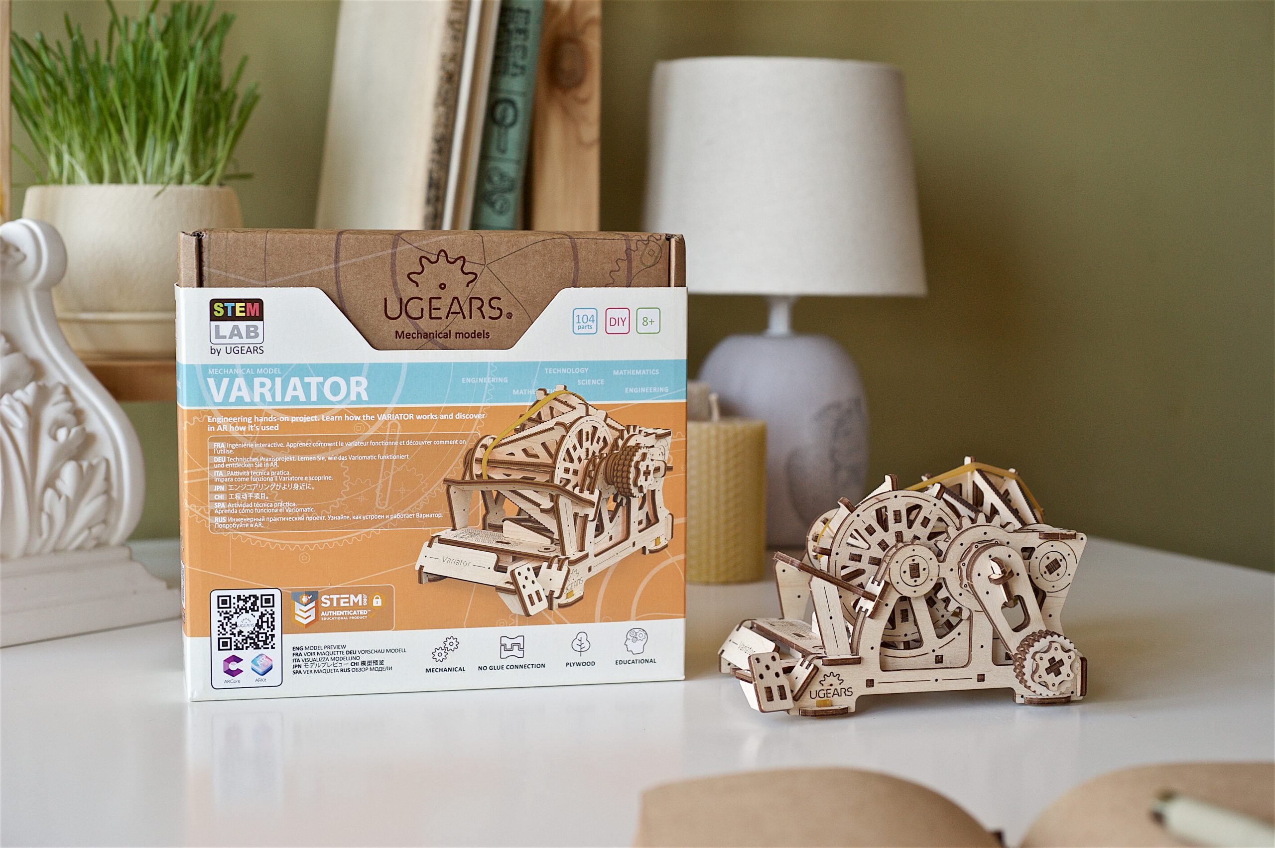 asambleaza-l si descopera principiile de functionare ale Variatorului. Descopera intrega colectie de puzzle-uri mecanice Ugears.