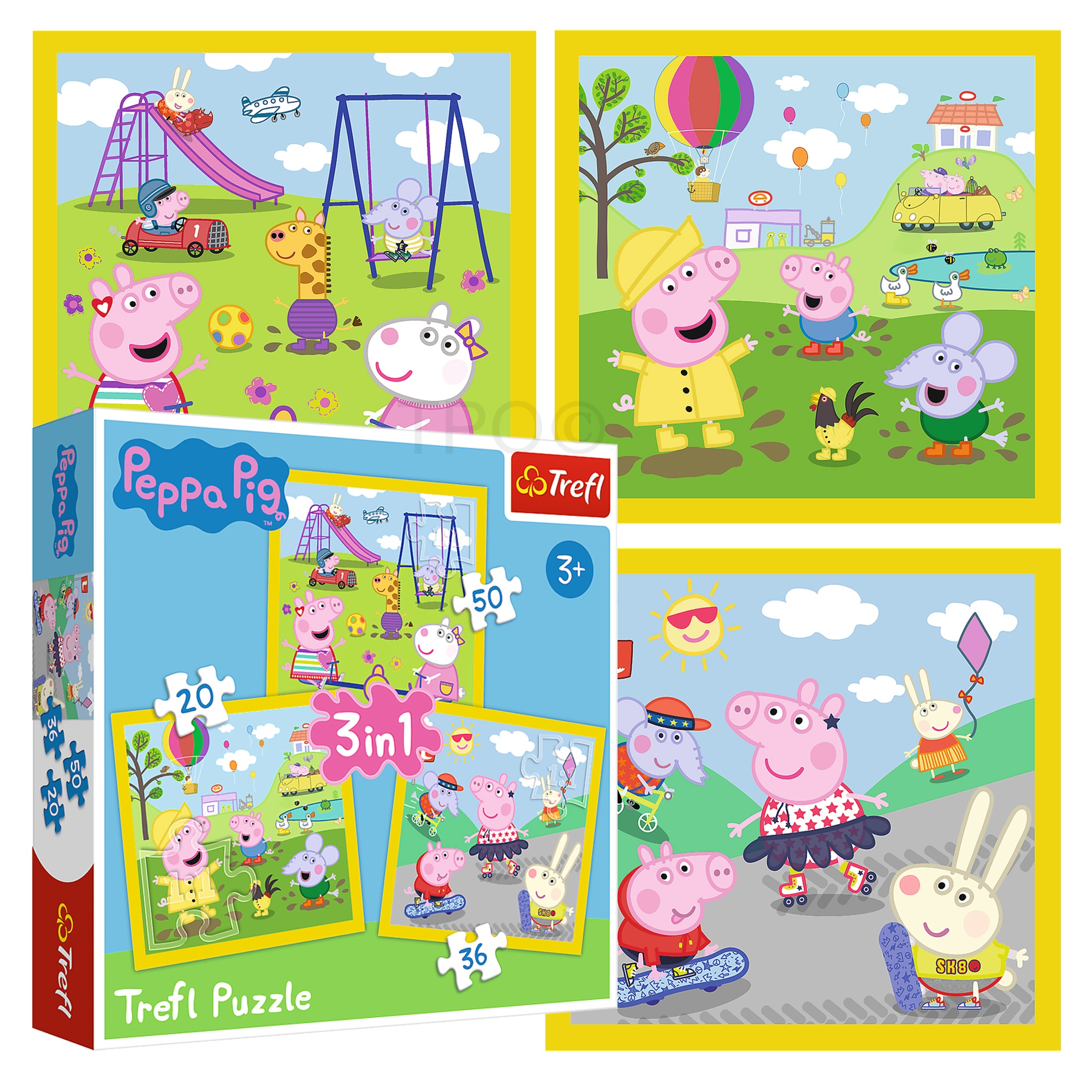 Set format din trei puzzle-uri: puzzle 1 - 20 de piese; puzzle 2 - 36 de piese și puzzle 3 - 50 de piese.