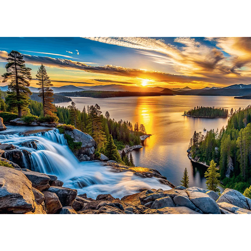 Puzzle - Apus de soare uimitor la lac, 1000 piese