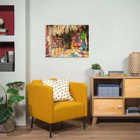 Cu o fotografie uimitoare, de înaltă calitate, a unei piețe tradiționale marocane, acest puzzle surprinde expansiunea orbitoare a condimentelor vibrante și a ierburilor parfumate în toată splendoarea lor.