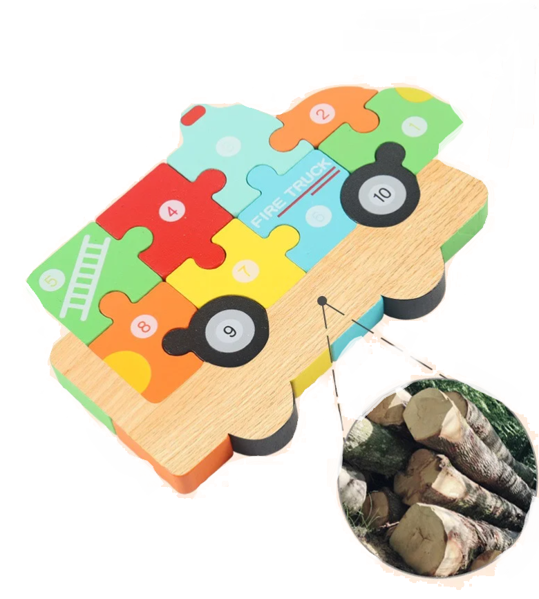 Puzzle din lemn - Masina de pompieri - 10 piese