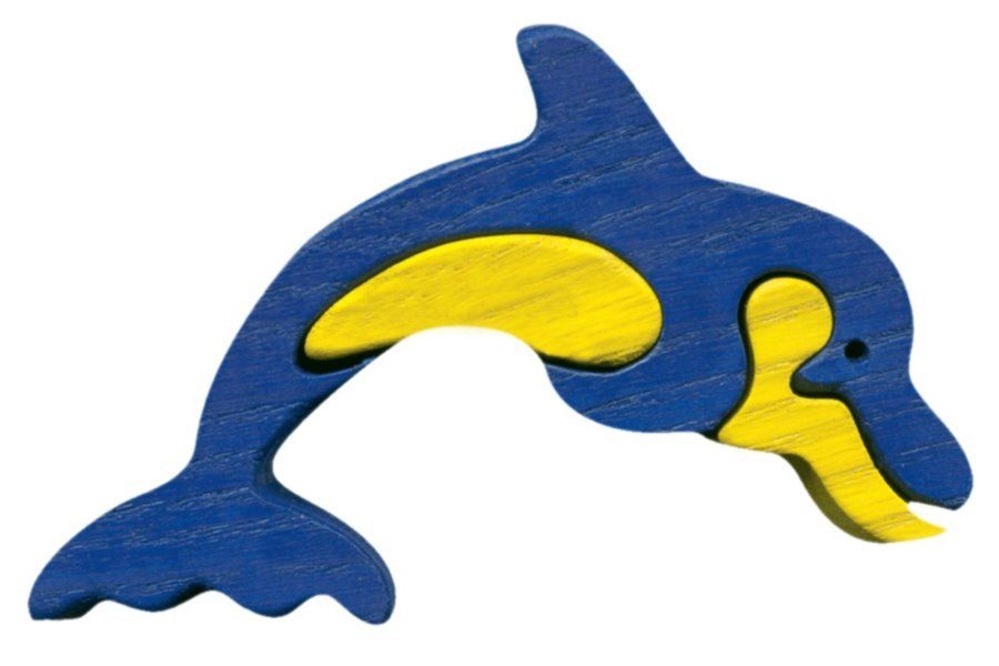 Puzzle pentru copii din lemn, delfin din 3 piese, grosime 2 cm.
