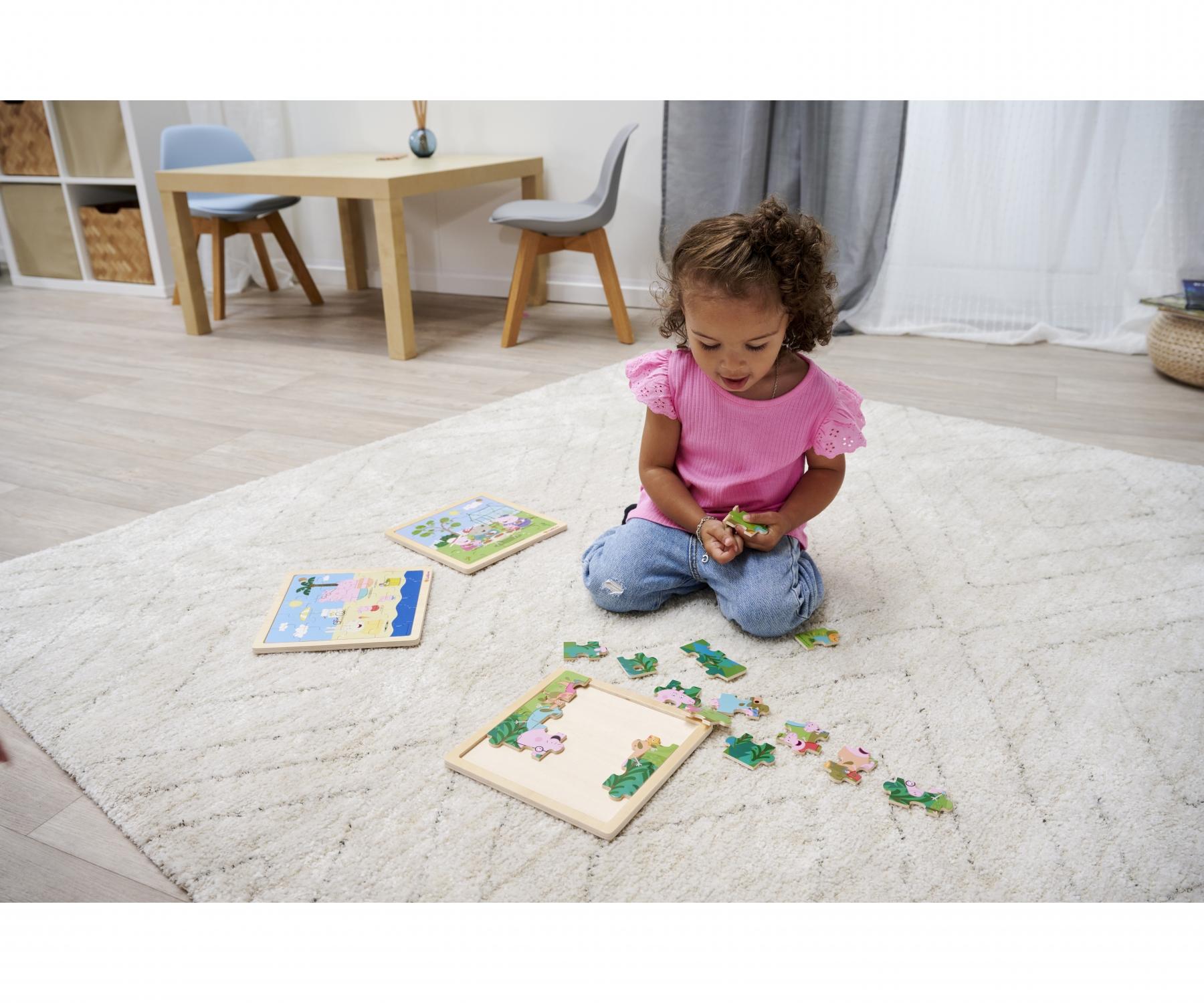 Bucură-te de o mulțime de distracții cu acest puzzle din lemn, Peppa Pig.