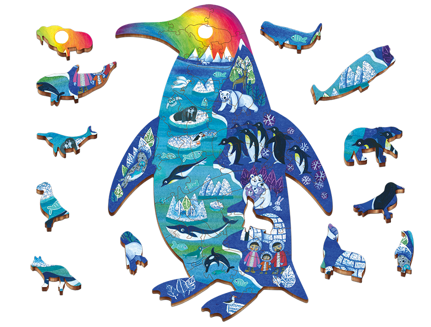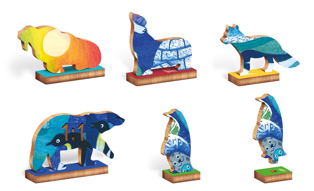 Un puzzle cu piese din lemn, cu o formă deosebită și un peisaj ilustrat. Printre piesele care alcătuiesc puzzle-ul găsiți 12 forme de animale care trebuie plasate fiecare pe suportul său. Jocul încurajează dezvoltarea logicii, a abilităților vizual-spațiale și a motricității fine.