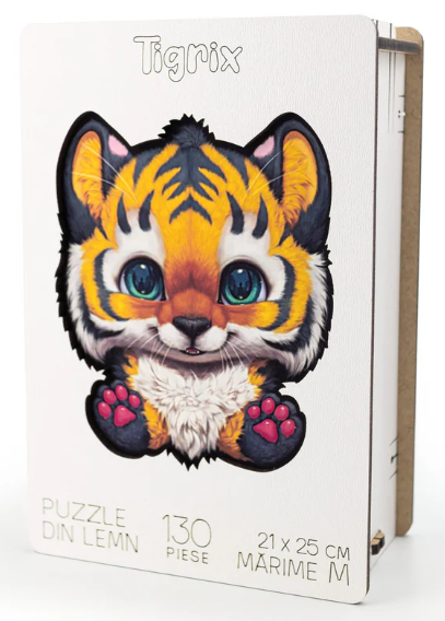 Acum, un puzzle din lemn te captivează nu numai prin design, ci și prin povestea sa și piesele sale unice! Prin urmare, faceți cunoștință cu Tigrix!