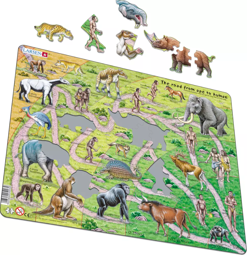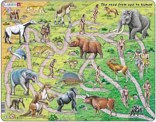Puzzle maxi Drumul de la maimuta la om, orientare tip vedere, 83 de piese, Larsen.