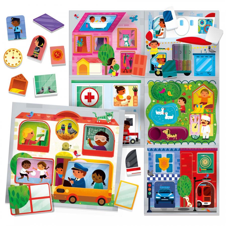 Montessori - Sa ne jucam in oras de la Headu iti permite sa asamblezi acest oras plin de zambete, apoi sa te distrezi in timp ce inveti totul despre el! Stiai ca exista o camera speciala pentru a face stiinta la scoala? Si ca exista o pisica care se ascunde intr-un tufis in parc? HEADU stimuleaza mintea copiilor prin joc si cu ajutorul dispozitivelor educationale amuzante, organizate intr-un meniu personalizat de competente, pentru a se desfasura intr-un mod spontan si neobligatoriu, cu o capacitate de invatare permanenta. Setul include, 6 cartonase, si 35 de piese.