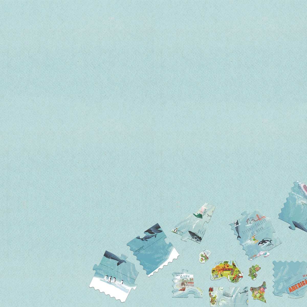 Începe cu Oceanele! Acestea vor forma un șablon în care apoi poți introduce fiecare continent, pe rând, piesă cu piesă.