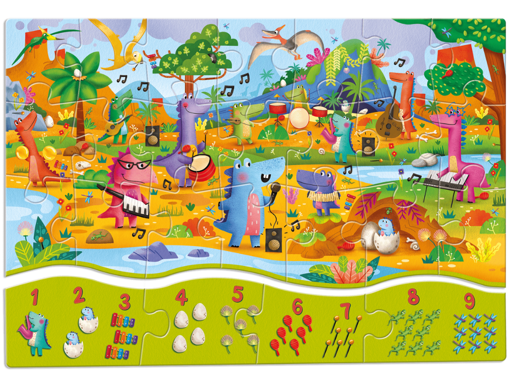 Puzzle educativ cu Numere și Cantități – Un joc captivant și interactiv, ideal pentru copiii care învață să numere și să recunoască cantitățile. Construit special pentru a dezvolta abilitățile cognitive și matematice de bază într-un mod vizual și distractiv. După asamblarea puzzle-ului, copilul va descoperi o scenă colorată în care va identifica obiectele și va corela numerele de la 1 la 9 cu cantitatea corespunzătoare.
