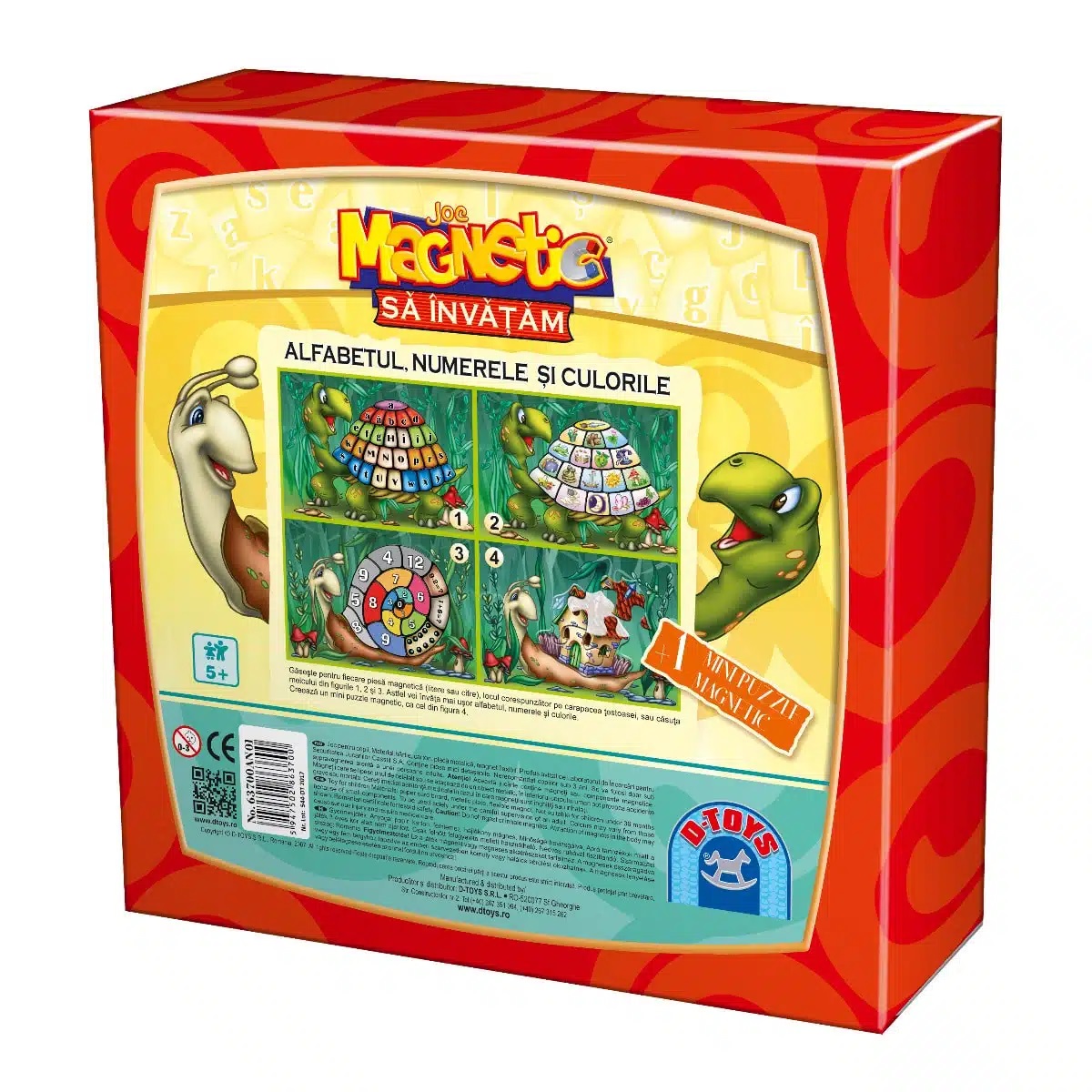 Un joc magnetic cu caracter educativ, prin care cei mici vor exersa alfabetul, numerele și culorile! Jocul dezvoltă imaginația și logica, spiritul de observație, puterea de concentrare și modul de gândire asociativ. Jocul conține: o tablă metalică, 4 imagini de fundal (puzzle căsuță, numerele, cuvinte, litere), figuri magnetice ștanțate și suport din lemn pentru tabla de joc.