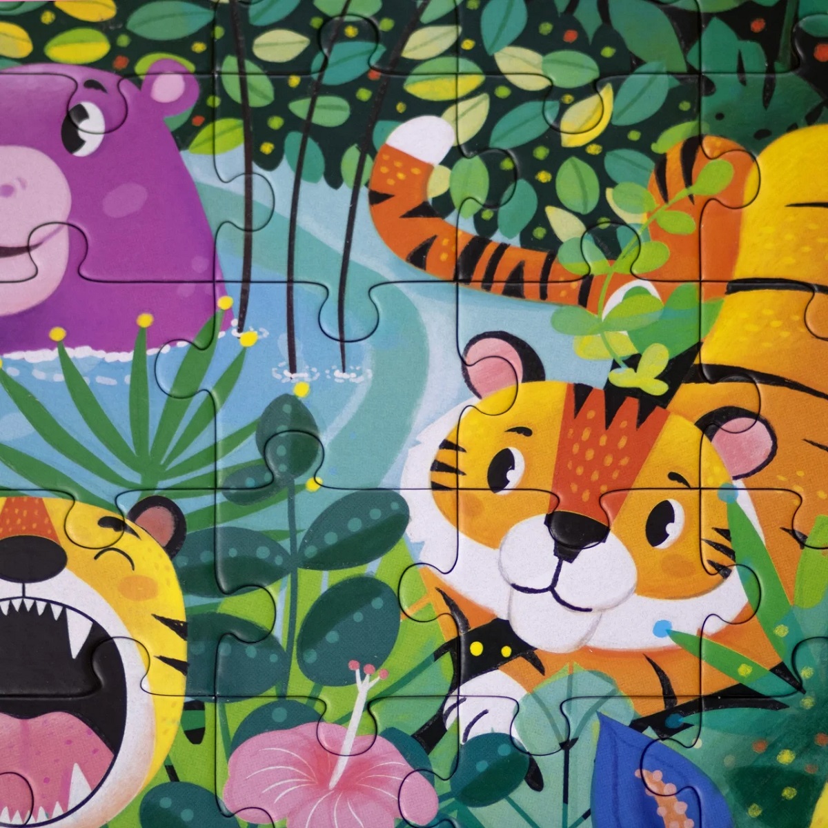 Jungla si animalele sale simpatice si atractiv colorate te asteapta sa le descoperi pas cu pas, in timp ce asamblezi acest puzzle uimitor!