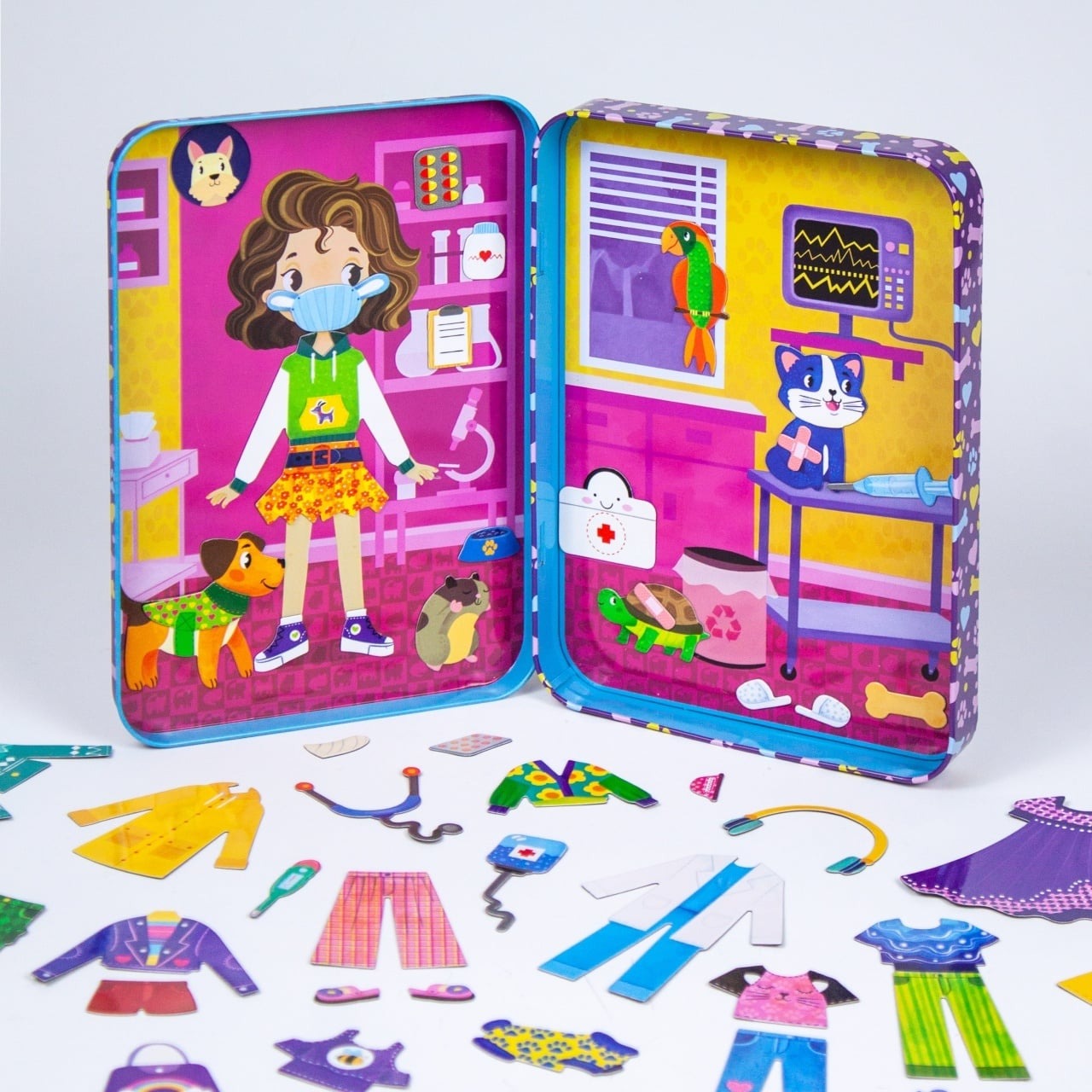Puzzle magnetic in cutie metalica - In vizita la veterinar, 45+ piese