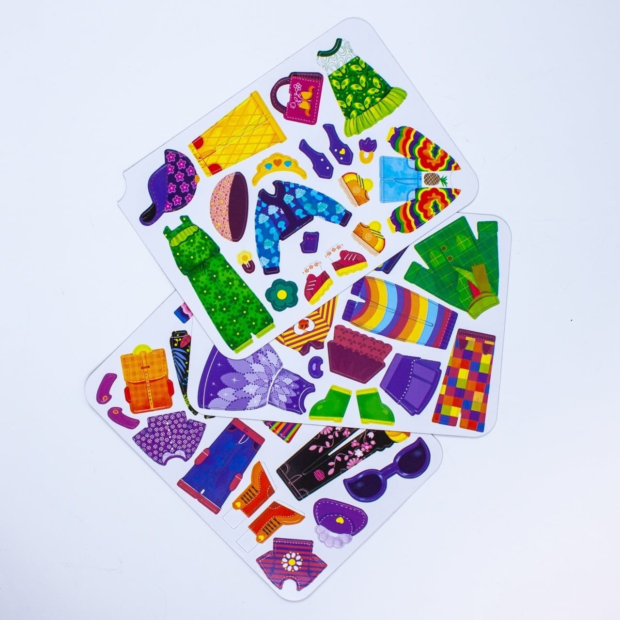 Cu o mulțime de haine și accesorii moderne și asortate, distracția nu are limite! În cutie vei găsit trei planșe magnetice, dar poți lipi magneți și pe cele două părți ale cutiei.