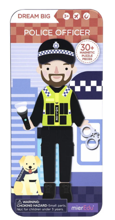 Puzzle magnetic in cutie metalica - Politist, 30 piese