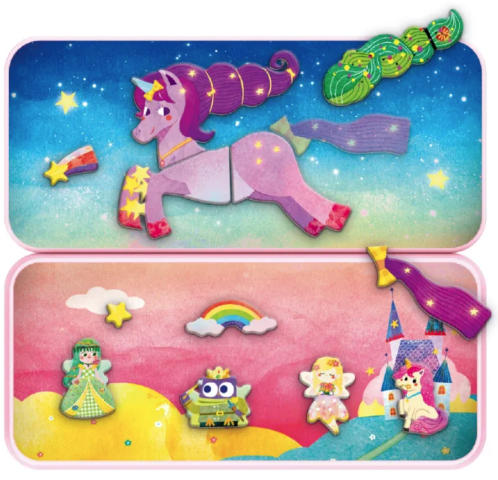 Cutiile noastre de puzzle tematice includ doua scene si mai mult de 30 de piese de puzzle magnetice, in care pot inventeze propriile povesti si asocia piese tematice.