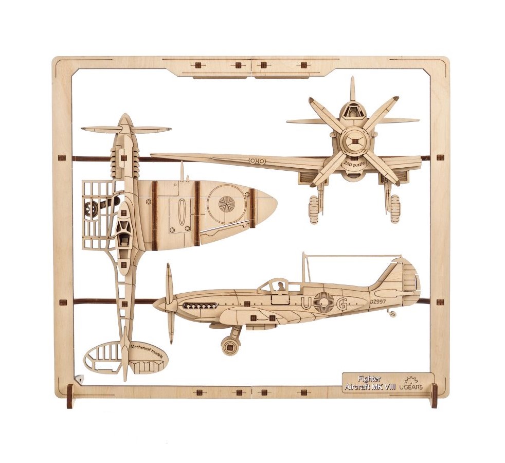 Fighter Aircraft, ca și celelalte vehicule clasice din noua noastră linie de puzzle-uri 2.5D, este diferită de orice a fabricat Ugears înainte. Aceste imagini mecanice din lemn sunt ca modele 3D aplatizate, menite pentru afișare statică, dar părțile mobile dau viață imaginii. Avionul dvs. de luptă vine cu propriul său cadru, cu picioare incluse și un suport.