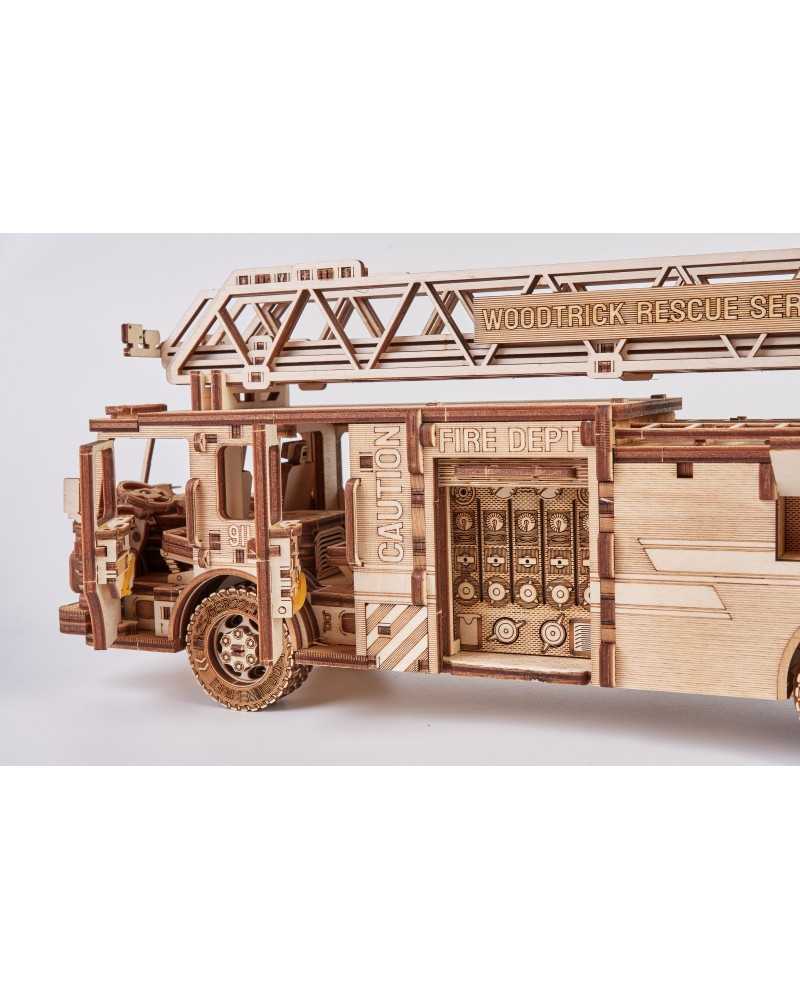 Întregul model este construit din placaj lustruit și este sigur atât pentru sănătatea dumneavoastră, cât și pentru mediu. Toate componentele camionului de pompieri de salvare pot fi asamblate fără a fi nevoie de lipici sau alte consumabile suplimentare.