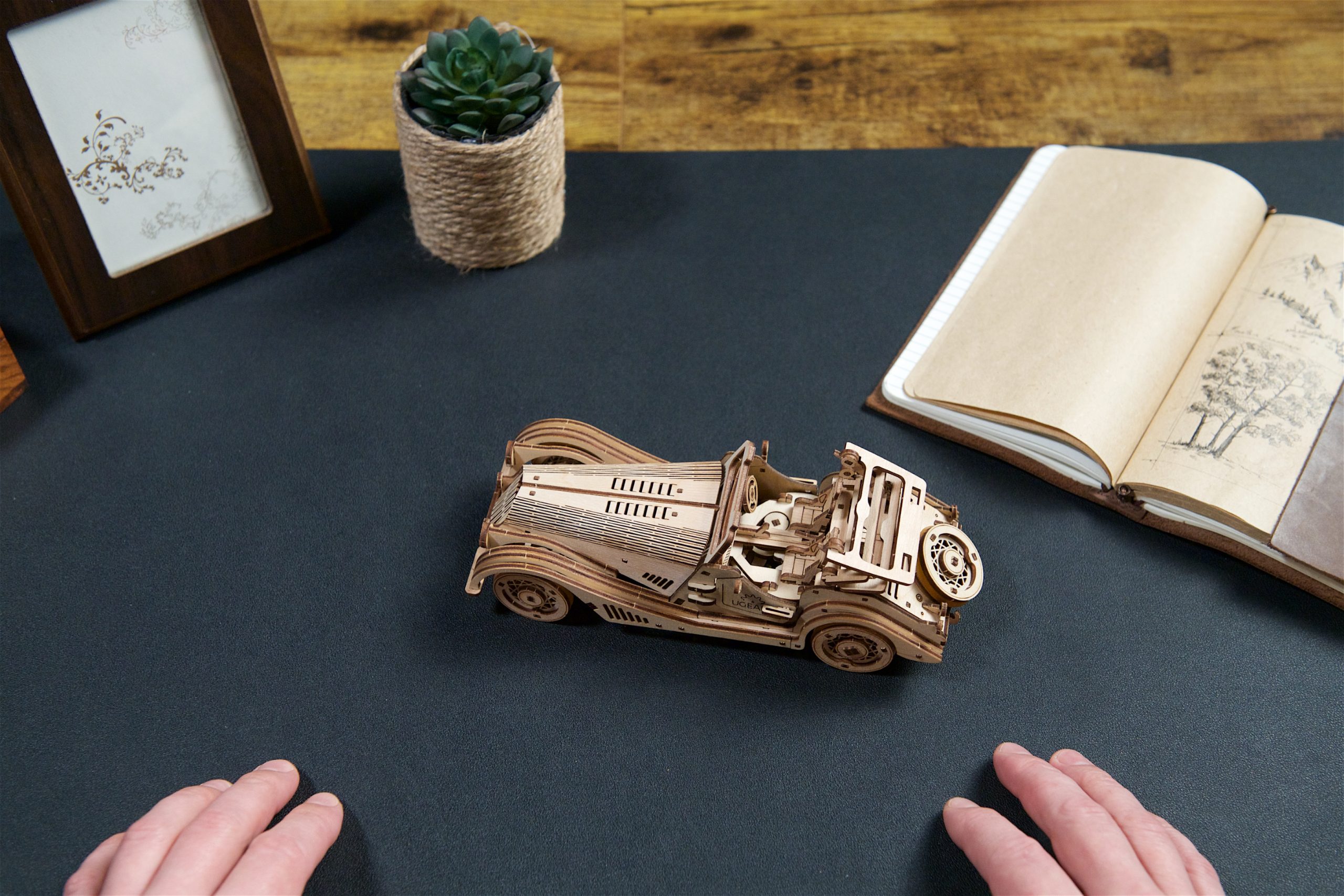 Va prezentam Sports Car Rapid Mouse, o masina sport clasica din mijlocul secolului al XX-lea. Acest model de automobil la scara 1:24 este al doilea model din seria Dual Motors de la Ugears, alaturandu-se Hot Rod-ului. Imaginati-va ca mergeti cu aceasta frumusete pe o sosea din tara, urmarind cum oamenii pe care ii intalniti devin absolut fascinati de masina voastra sport.