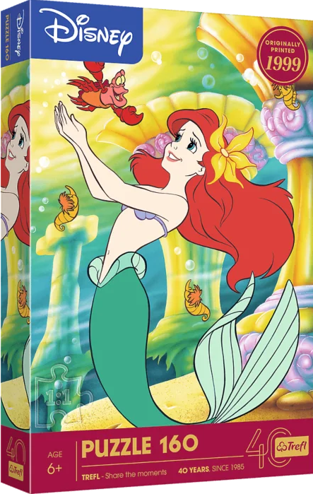 Puzzle-ul Trefl aniversar de 40 de ani cu 160 de piese - Mica Sirenă este un set unic de puzzle-uri care va încânta tinerii fani ai Prințeselor Disney. Setul este format din 160 de piese, fiind ideal pentru copiii care abia își încep aventura cu puzzle-uri.