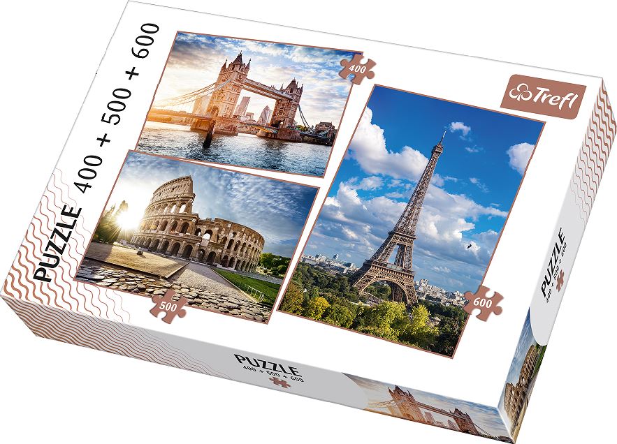Set 3 puzzle 400, 500, 600 piese - Tower Bridge, Colosseum si Turnul Eiffel