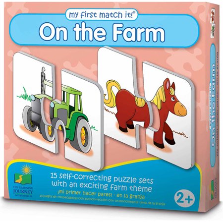 Acest set colorat La Ferma de la Learning Journey de 15 piese de puzzle cu tematica ferma ofera copiilor o introducere excelenta a personajelor si obiectelor lor preferate din ferma. Fiecare piesa prezinta o imagine a unui obiect de la ferma familiar. Copiii vor invata sa recunoasca ceea ce se gaseste la ferma, potrivind pur si simplu piesele corecte pentru a finaliza puzzle-ul. Puzzle-urile se autocorecteaza, deoarece nu exista doua piese de puzzle la fel. Exploreaza ferma – cei mici vor iubi Jocul de potrivire - La Ferma. Ilustratiile prietenoase, colorate creeaza o oportunitate ampla pentru conversatie si invatare. Tema puternica este conceputa pentru a promova abilitatile de conversatie si sociale si pentru a capta imaginatia copilului. Introduceti Puzzle-urile intr-un mod simplu,distractiv - Jocurile de potrivire sunt concepute pentru a-i oferi celui mic nivelul corect de provocare; incepe prin a-i oferi doar doua piese de potrivire; creste nivelul de provocare, oferind pur si simplu mai multe piese din care poate alege. Dezvolta abilitatile de rezolvare a problemelor – aceste jocuri de potrivire sunt o modalitate foarte buna de a ajuta copilul sa dezvolte abilitati de baza pentru rezolvare problemelor, cum ar fi gandirea creativa si perseverenta. Acestea sunt competente care pot fi transferate altor sarcini. Imbunatatirea concentrarii - Acesta este primul meu joc de potrivire! Puzzle-ul este o modalitate excelenta de a spori capacitatea de concentrare a copilului tau asupra sarcinii pe care o are de indeplinit. Puzzle-ul se formeaza perfect, ceea ce inseamna ca doar o singura piesa se va potrivi cu oricare alta, eliminand frustrarea si crescand puterea de concentrare pentru mai mult timp. Creste stima de sine si increderea- Completarea corecta a fiecarui mini puzzle si recompensarea cu o imagine distractiva legata de interesanta tema a fermei reprezinta un mare impuls pentru cresterea increderii unui copil. Sa inveti mai multe lucruri despre un subiect poate fi o parte esentiala a cresterii stimei de sine a unui copil, mai ales ca impartasesc aceste noi cunostinte cu altii.