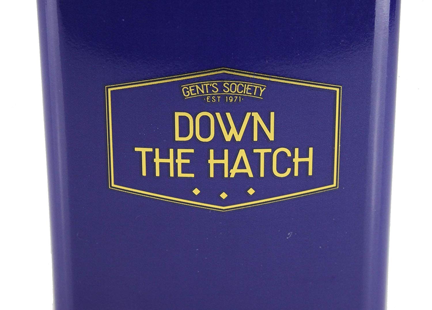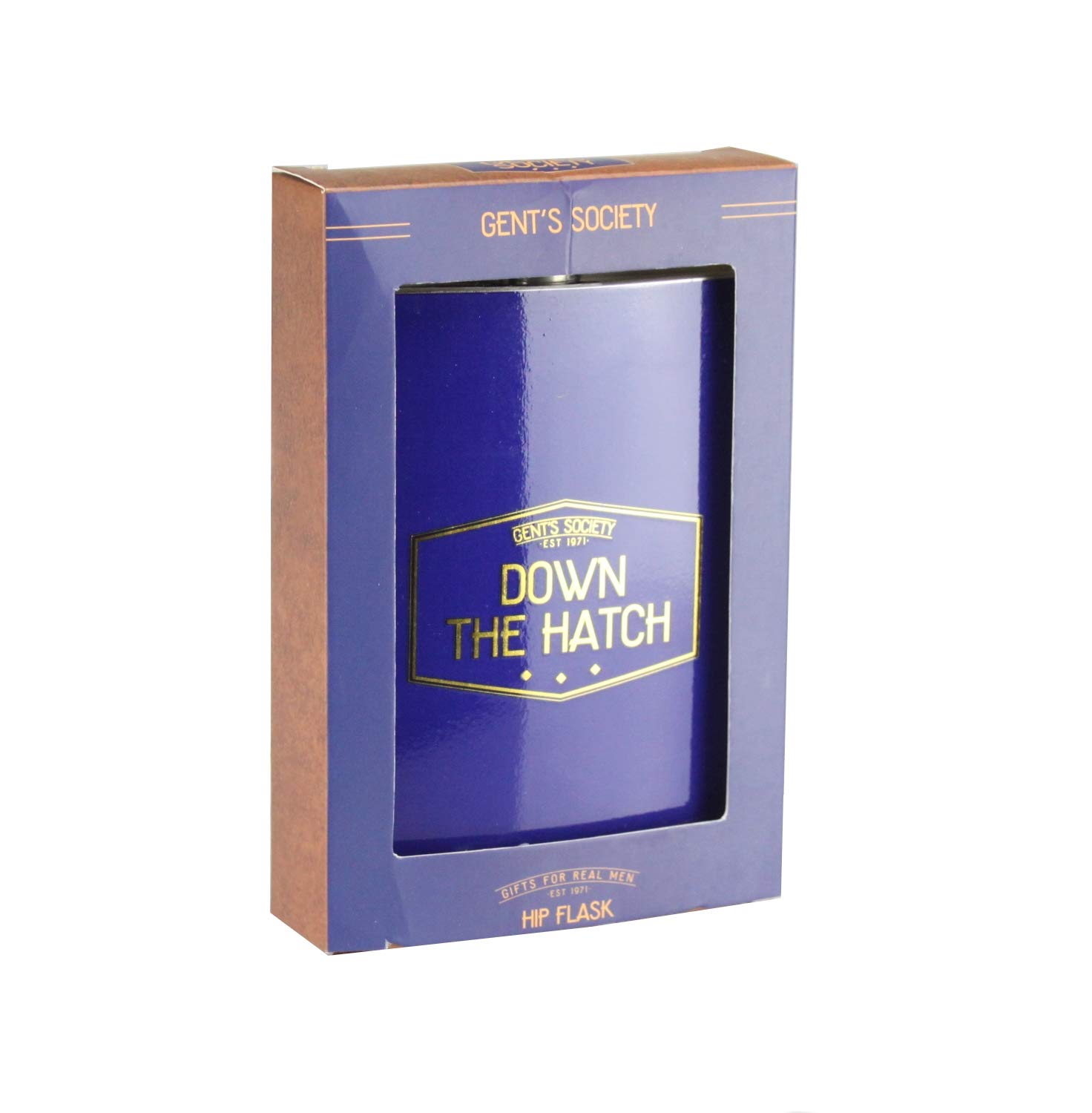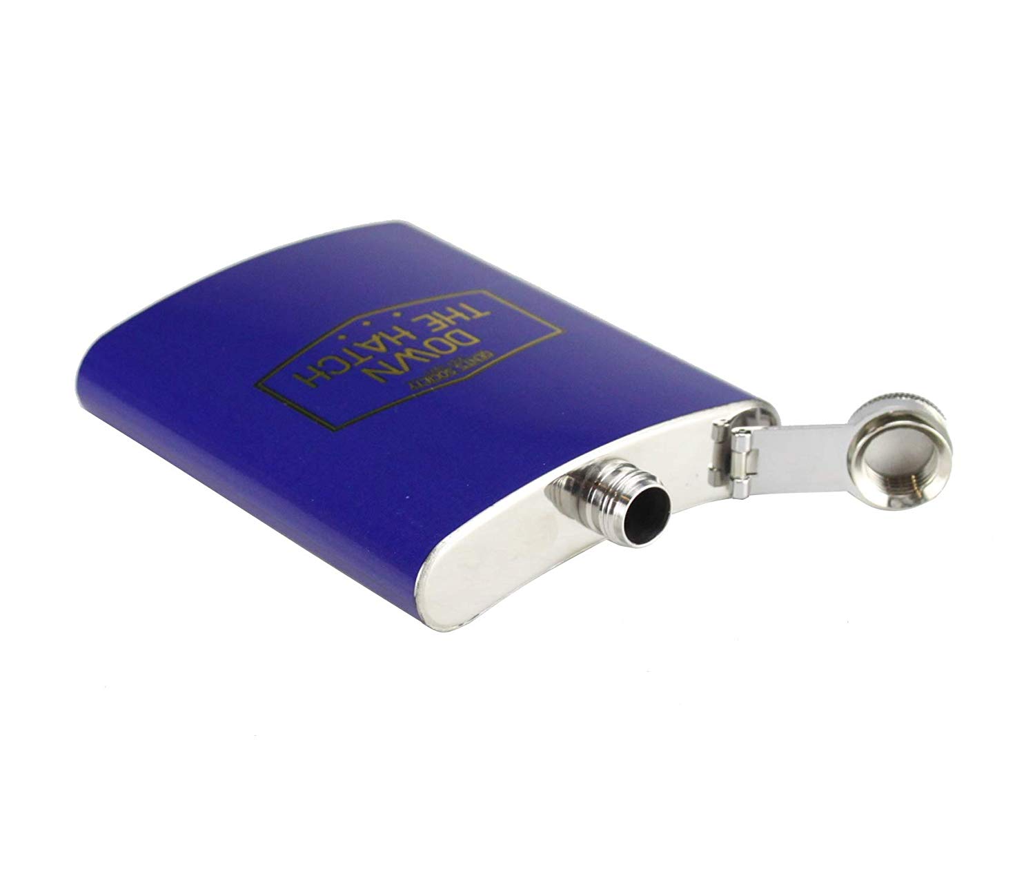 Ploscă din metal, cu gâtul scurt și strâmt, capacitate mică și corp rotund, turtit, ideală pentru a ține băutură preferată cât mai aproape.