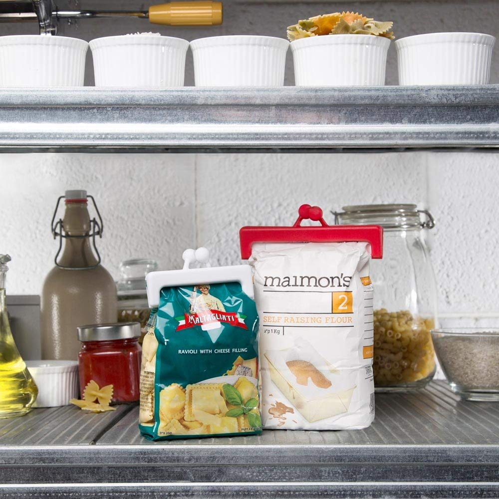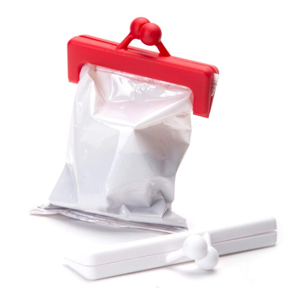 Set 2 cleme sigiliare - Red and White, din plastic, potrivit pentru a pastra mancarea proaspata.