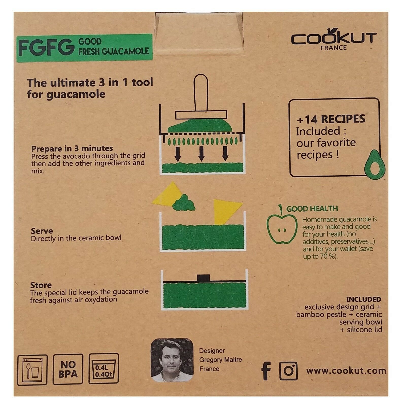 Set complet pentru preparare, servire si depozitare guacamole. Contine un bol din ceramica, sita, pistil si capac, precum si 14 retete delicioase. Tot ce trebuie sa faceti e sa treceti avocado prin sita, adaugati celelalte ingrediente, amestecati si serviti! Ce ramane poate fi depozitat in acelasi bol, iar capacul va preveni oxidarea mancarii.