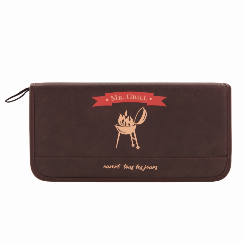 Set accesorii pentru grătar compus dintr-o furculiță, paletă, un clește și o mănușă.