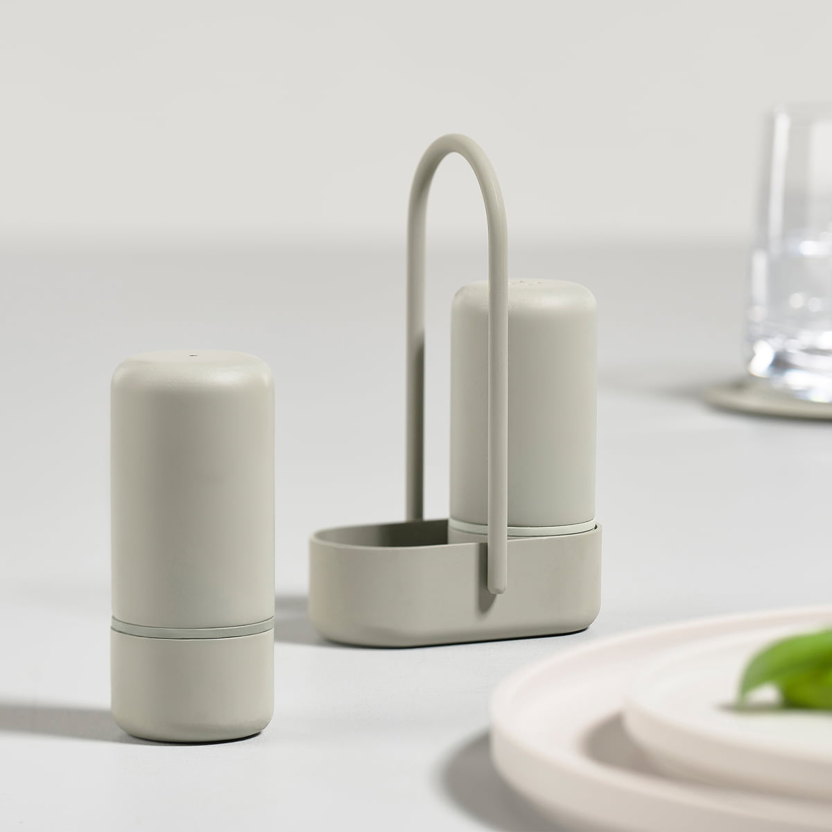Designul acestui set de solnițe pentru sare și piper, se adaptează în orice decor, inspiră curiozitatea și îmbrățișează materiale rafinate.