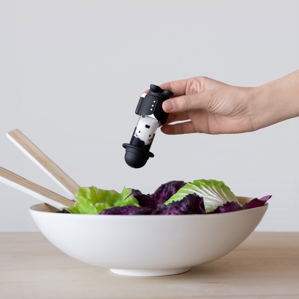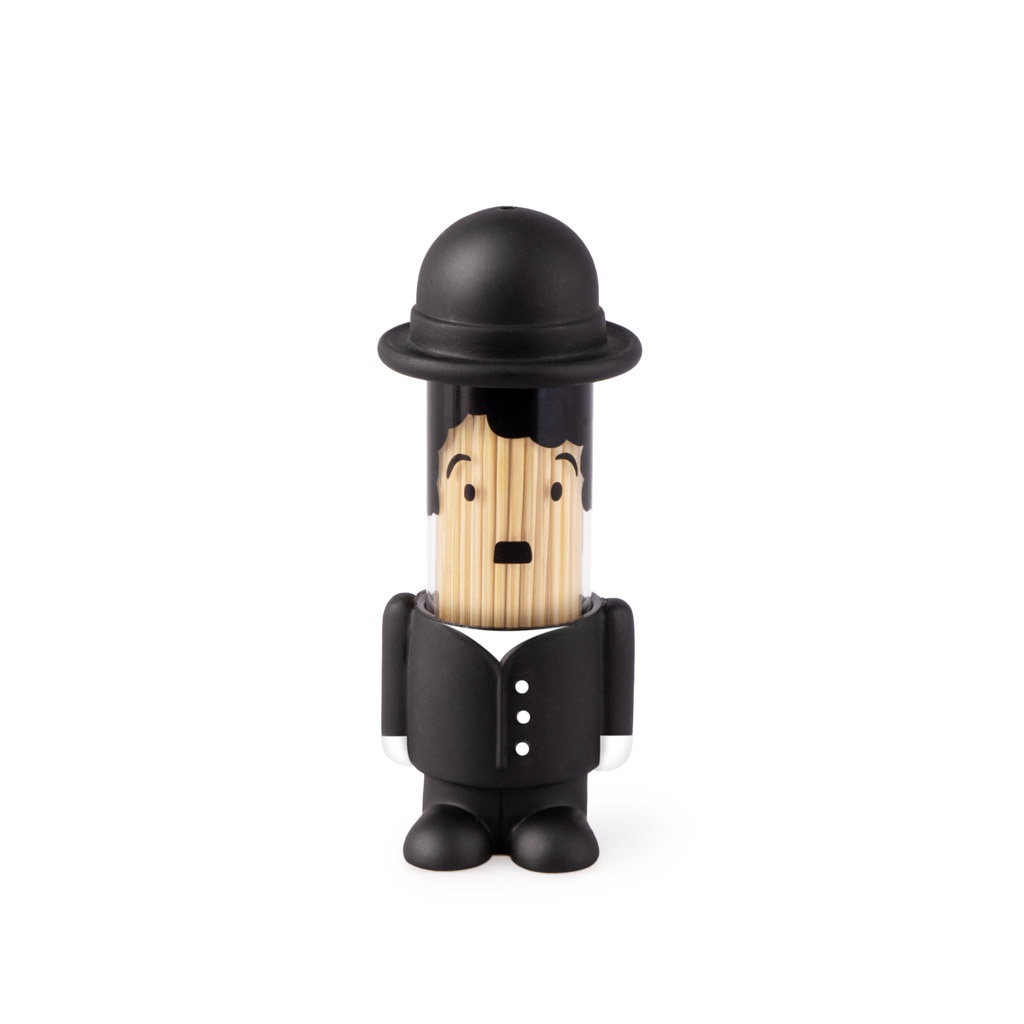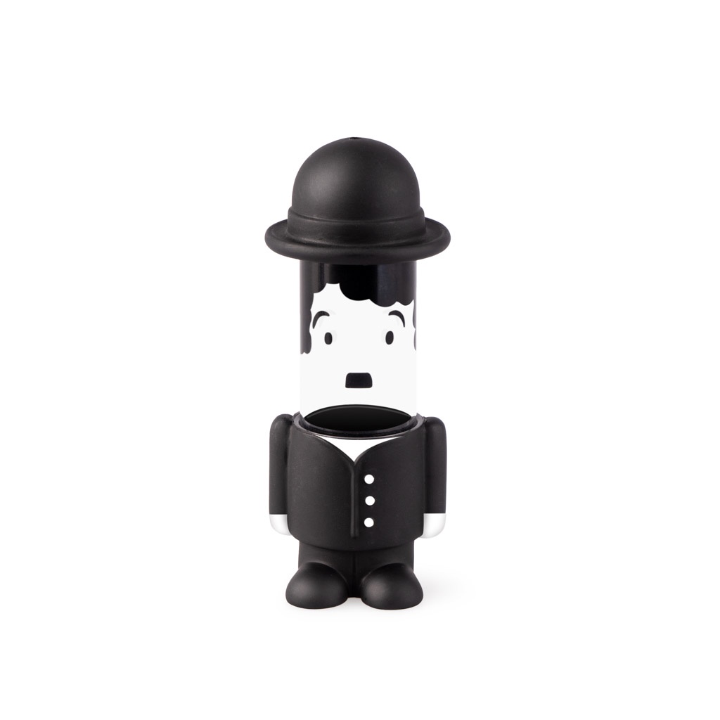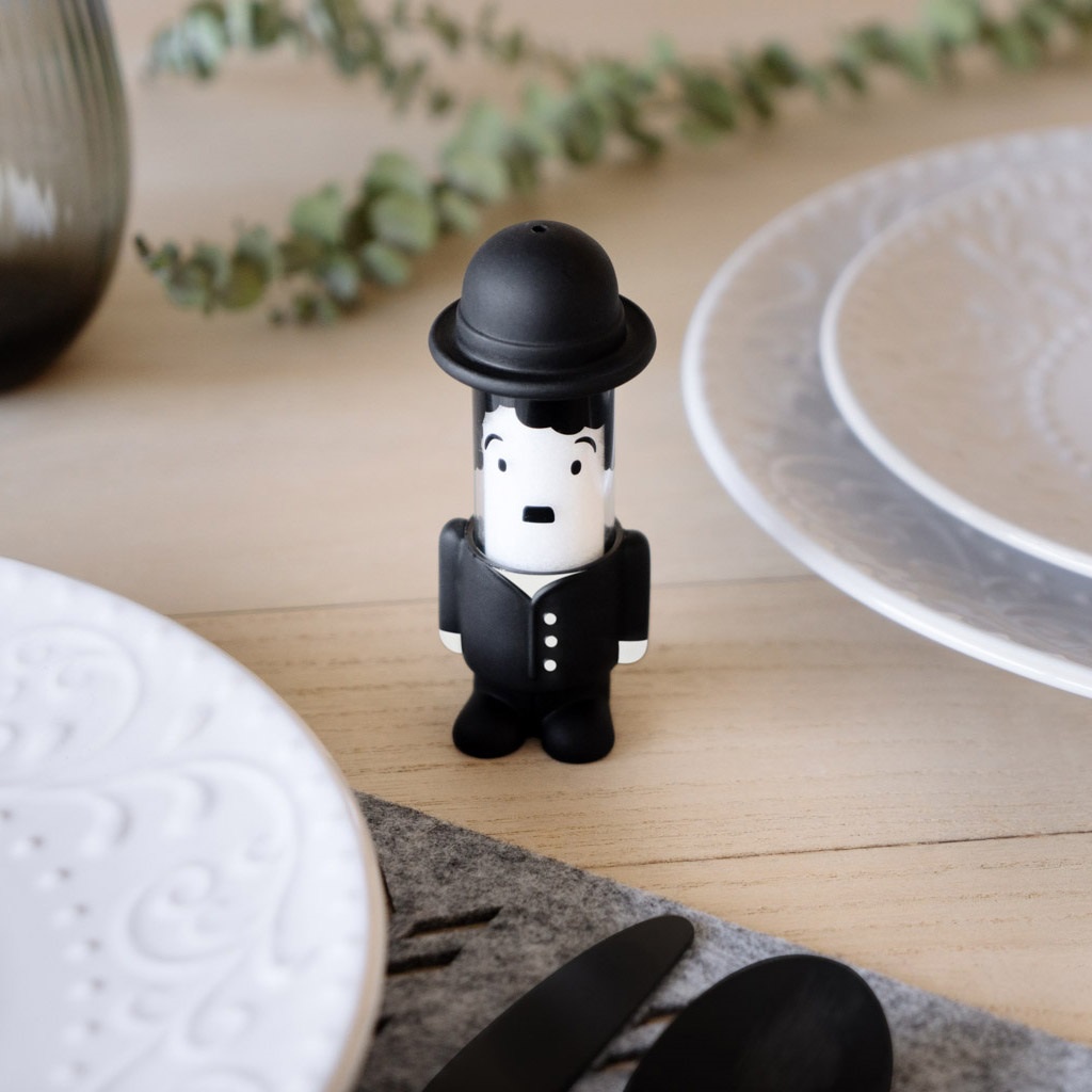O solnita multifunctionala, se poate folosi pentru sare, piper, dar si ca suport pentru scobitori. Cu un design ce ne aduce aminte de faimosul Charlie Chaplin, de veselia cu care a bucurat lumea, aceasta solnita nu poate lipsi de pe masa dumneavoastra sau poate fi un cadou inedit pentru o persoana draga.