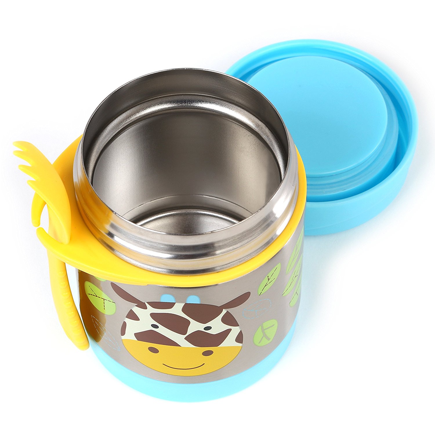 Borcanul termoizolat de la SKIP HOP este din inox si poate mentine o portie de mancare rece pana la 5 ore sau calda pana la 7 ore. Pe margine are un spatiu special pentru un tacam si vine la pachet cu o ustensila ce poate fi folosita atat ca furculita cat si ca lingura. Capacitatea termosului este de 325 ml. Produsul este recomandat dupa varsta de 1 an. Produsele SKIP HOP indeplinesc toate standardele internationale de siguranta, atat din punct de vedere mecanic si fizic, cat si in ceea ce priveste lipsa substantelor chimice daunatoare cum ar fi ftalatii sau BPA.