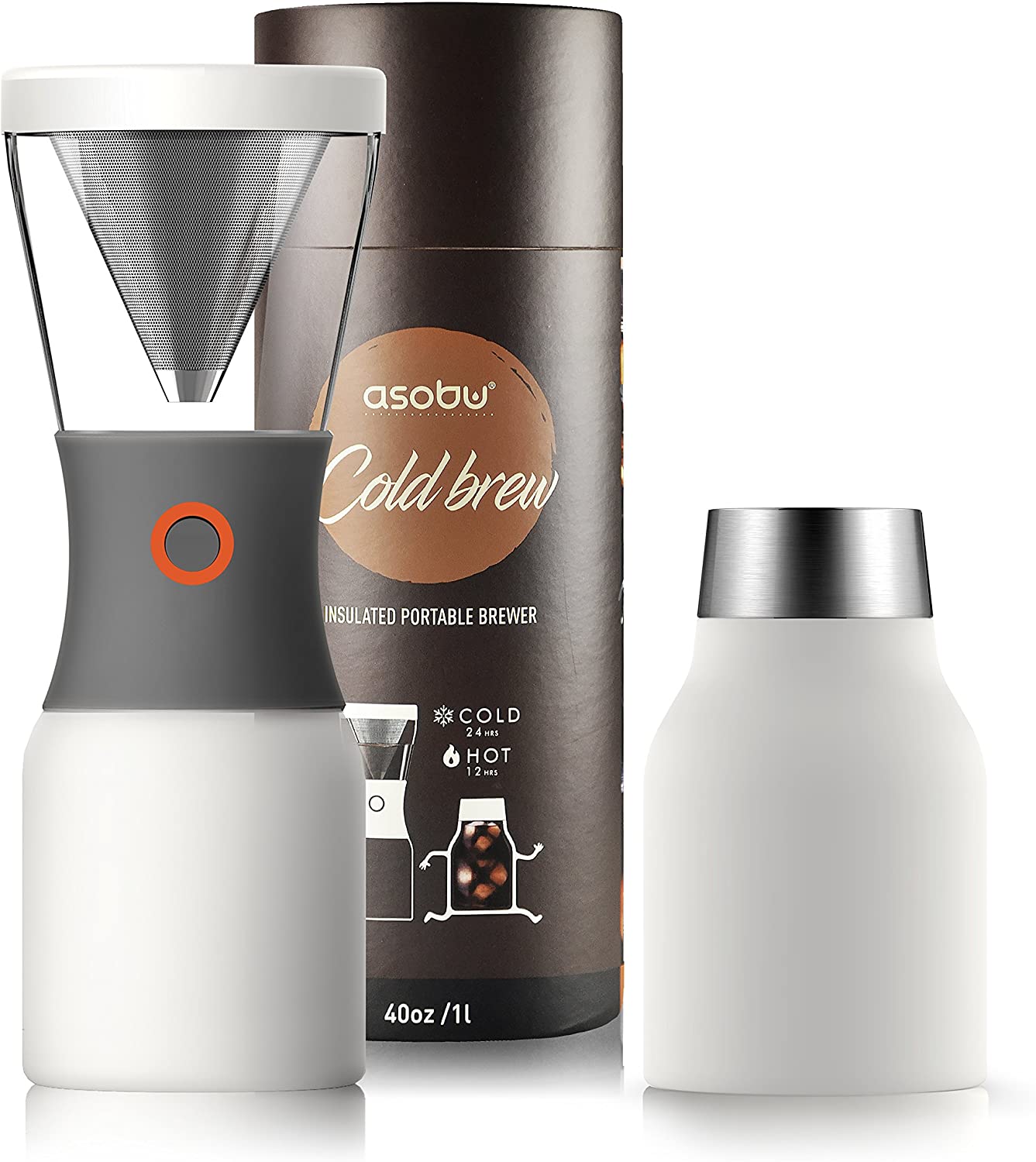 Cafetiera Asobu-White, cu cana detasabila, pentru a va putea bucura de putea bucura de cafeaua dumneavoastra calda la domiciliu, la birou, in parc sau pe drum.