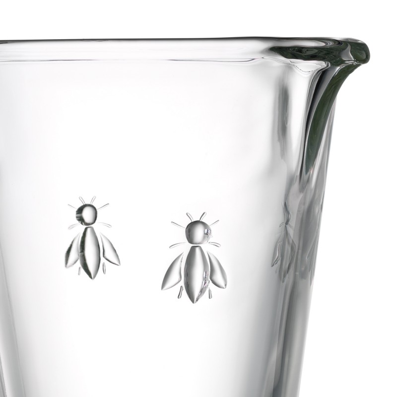 Carafă din sticlă transparentă cu capacitatea de un litru, decorată cu albine.