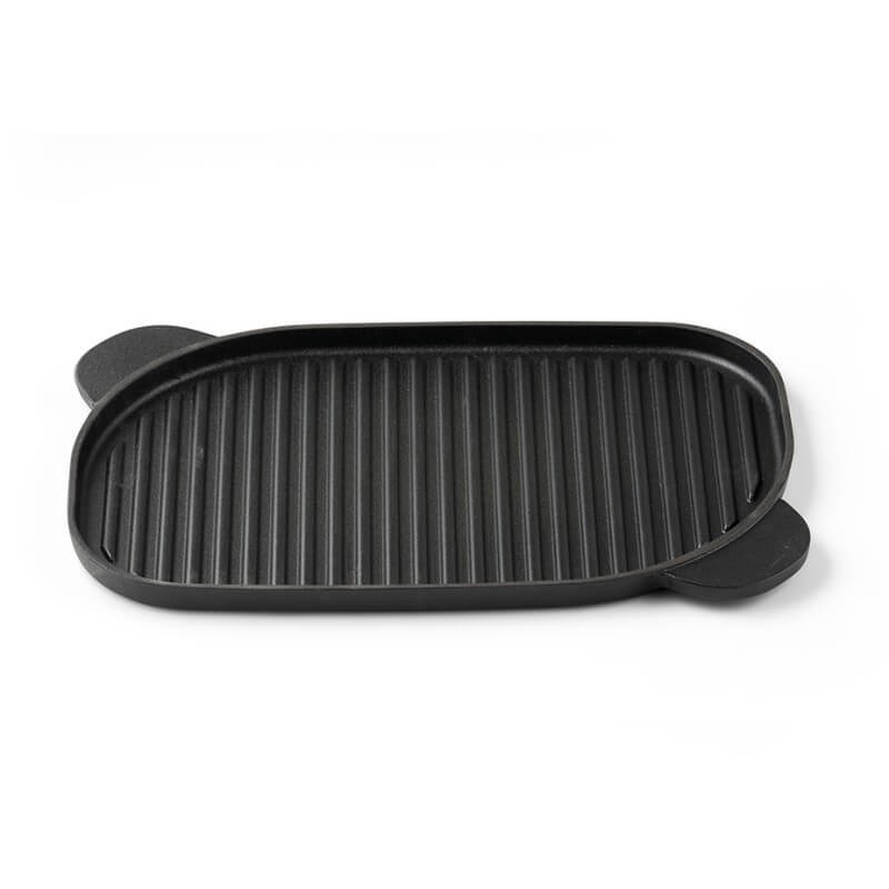 Tava pentru grill este confectionata din fonta, astfel încât caldura este distribuita uniform. Suprafata este acoperita cu un strat de email care faciliteaza crearea unei suprafete anti-aderente. Este potrivita pentru prajirea carnii, legumelor, peste sau pui. Grasimea si sucurile din carne se scurg in santurile grill-ului, astfel incat aceasta nu va fierbe.