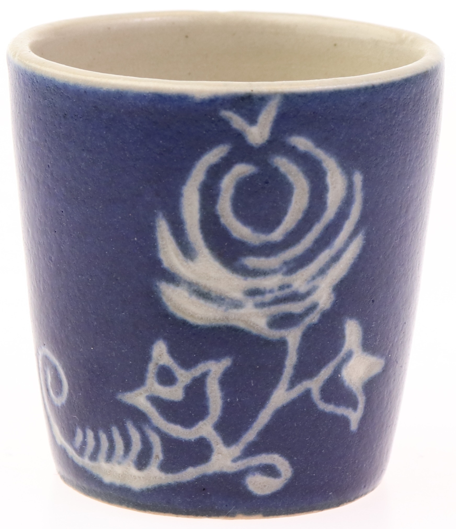 Paharul de tip shot este lucrată manual pe roata olarului și este decorată cu minunate simboluri săsești.