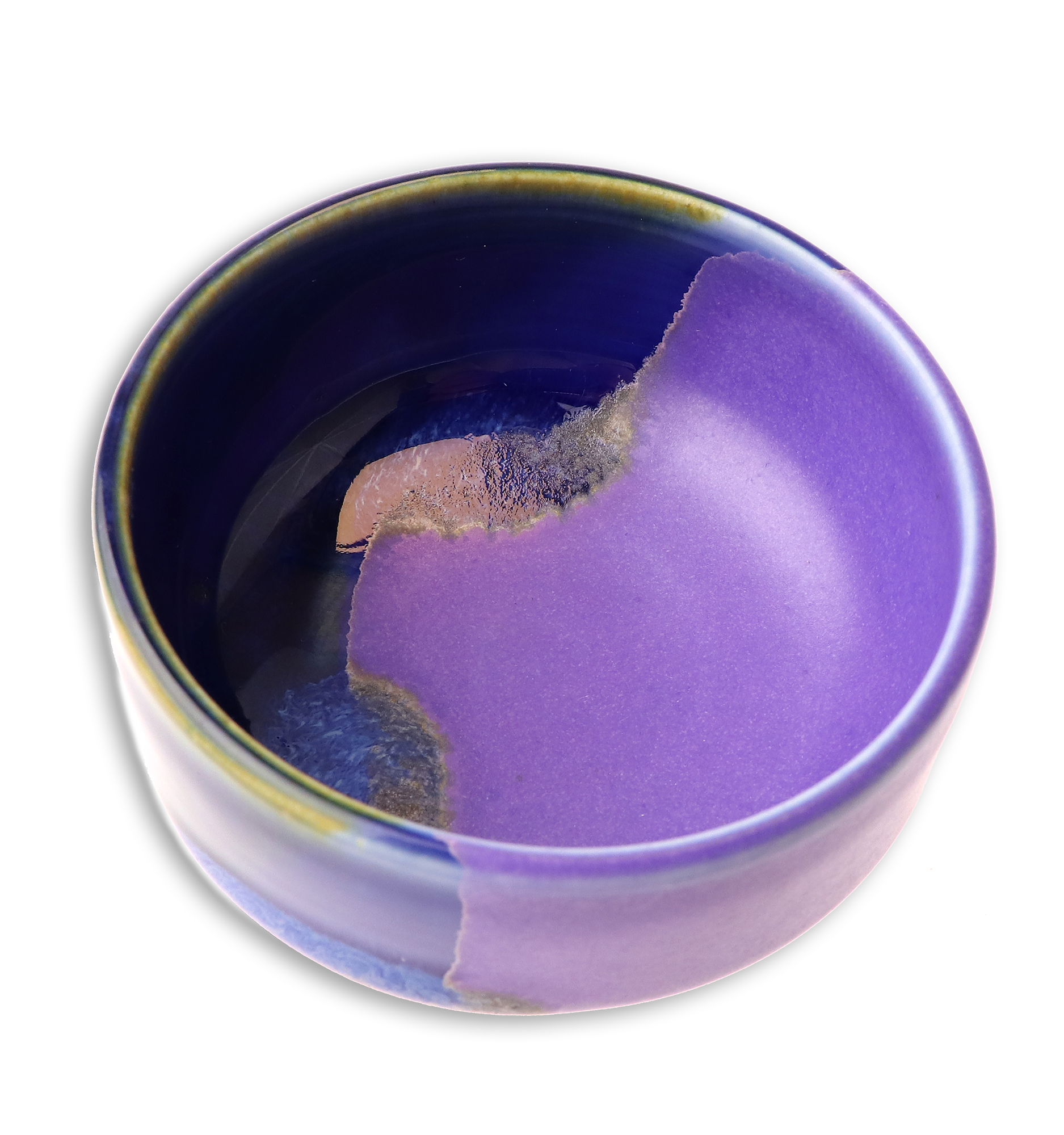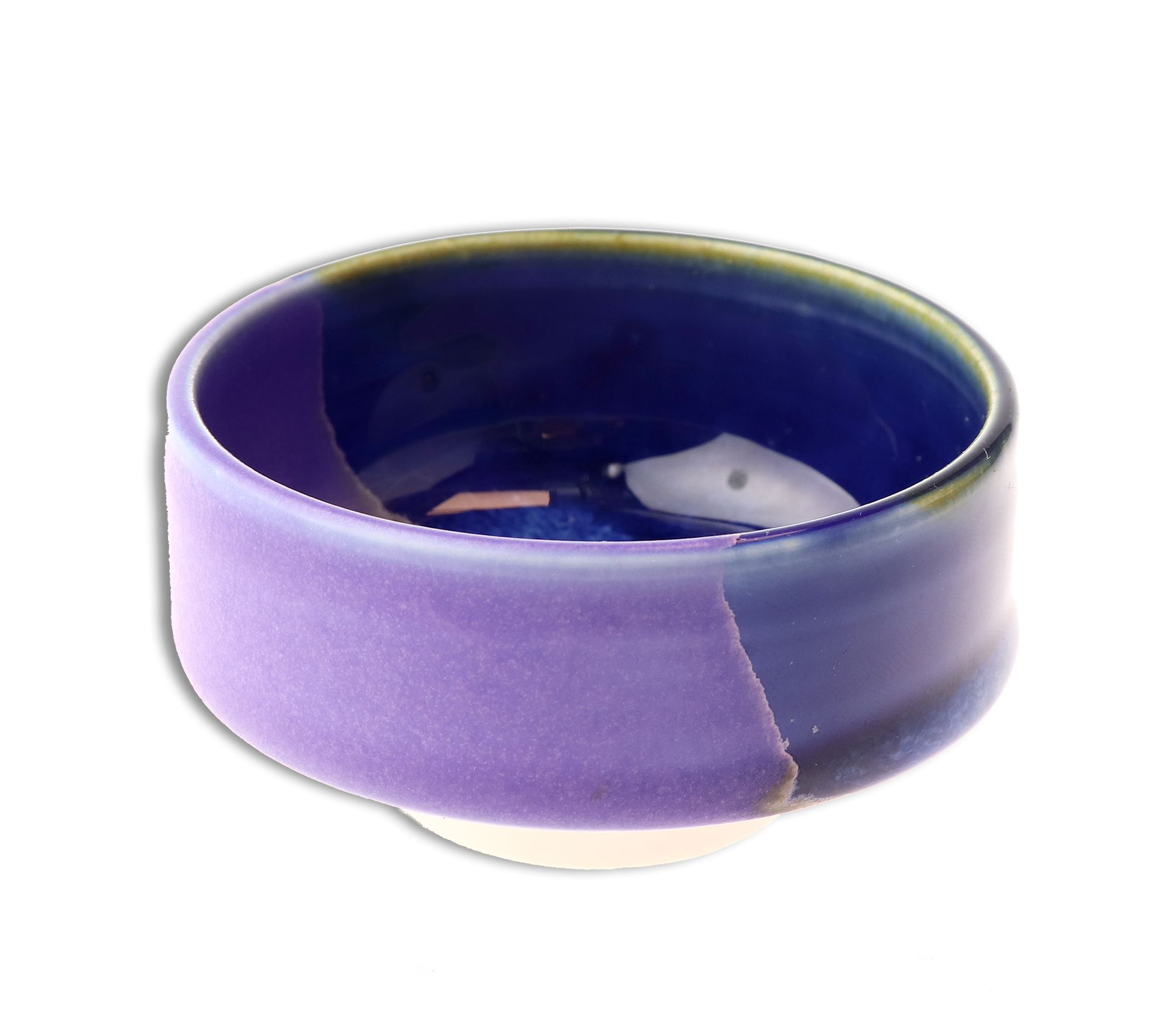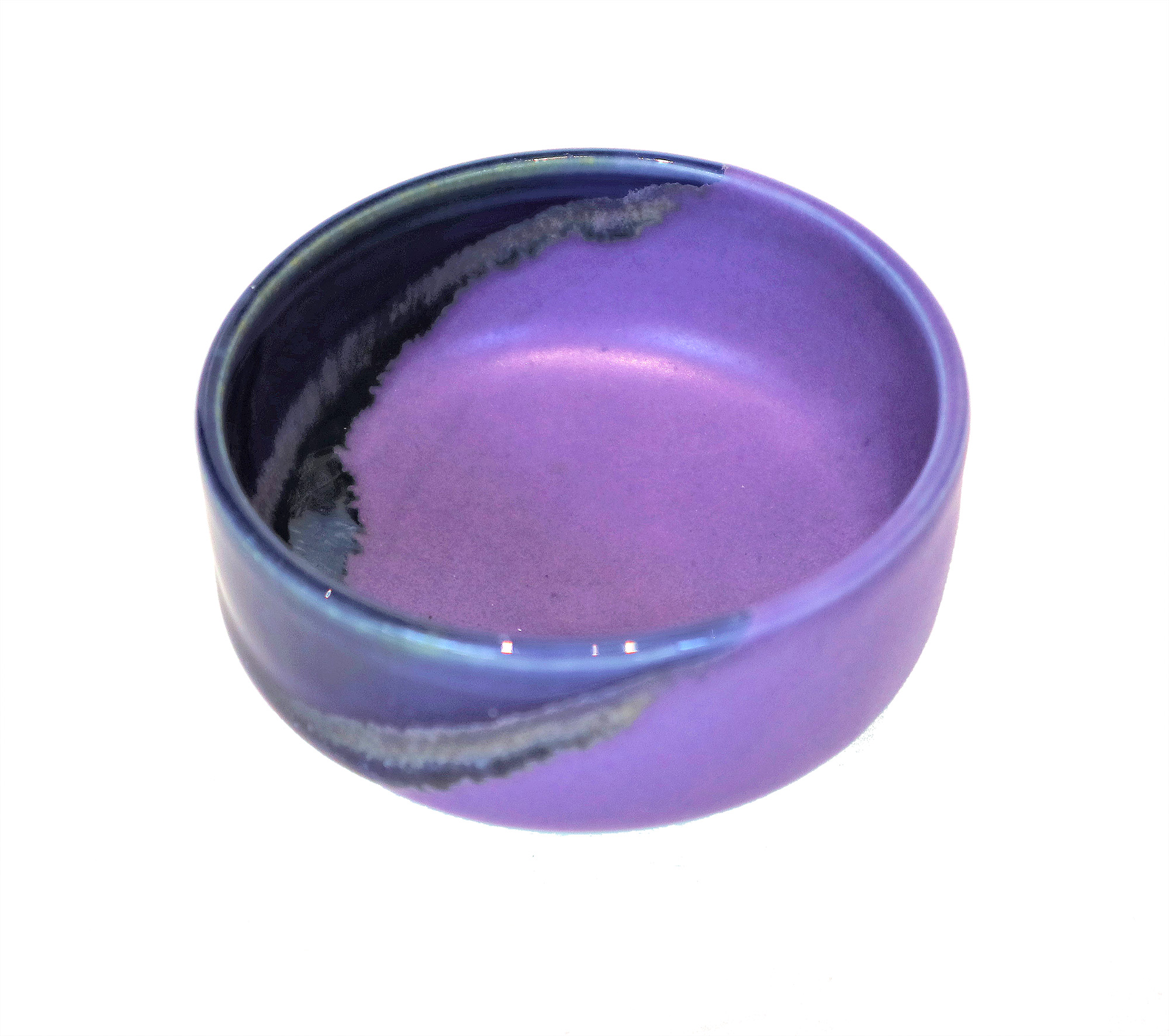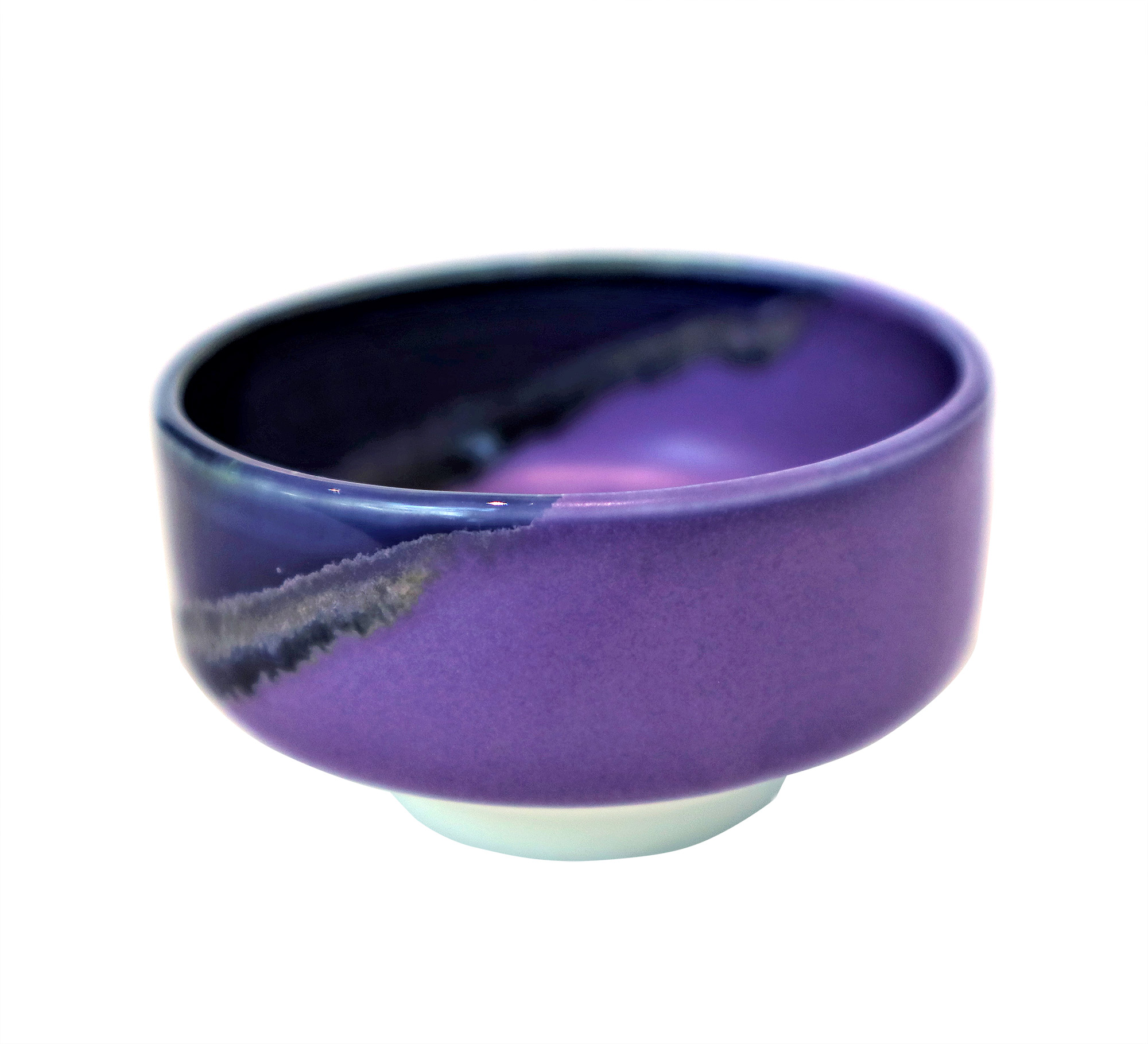 Pahar de sake realizat la roata olarului, cu picior subtil și în nuanțe de mov.