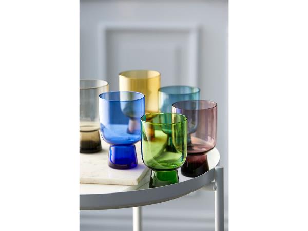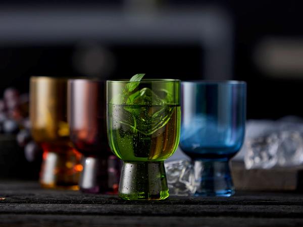 Șase pahare din sticlă colorată, cu un design frumos, cu picior mic care aduc viață mesei cu varietatea lor de culori. Paharele se pot folosi pentru diverse băuturi dar și decorate cu diverse lumini sau flori. Culorile sunt verde, albastru cobalt, fumuriu, chihlimbar, violet și albastru cerneală.