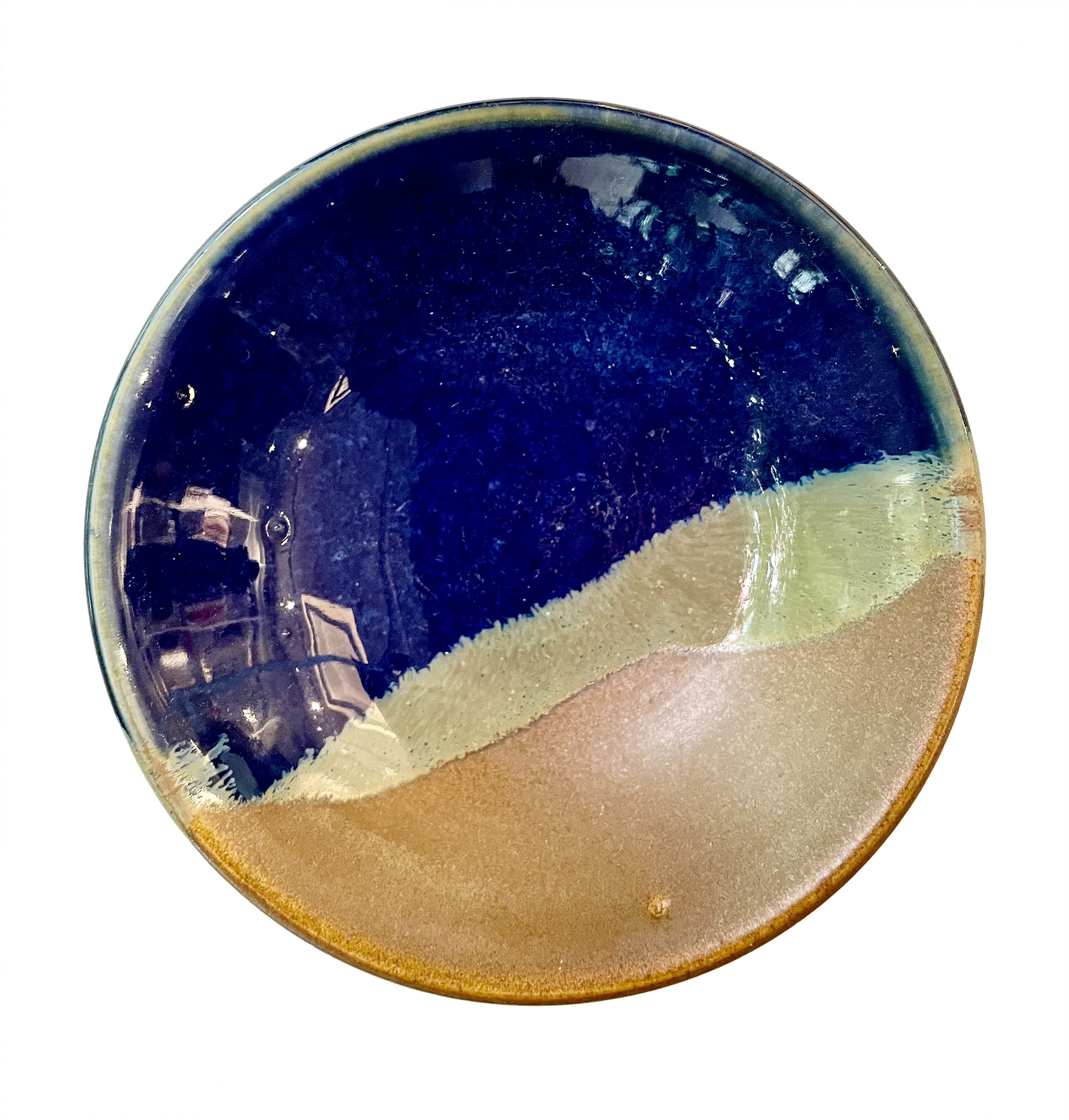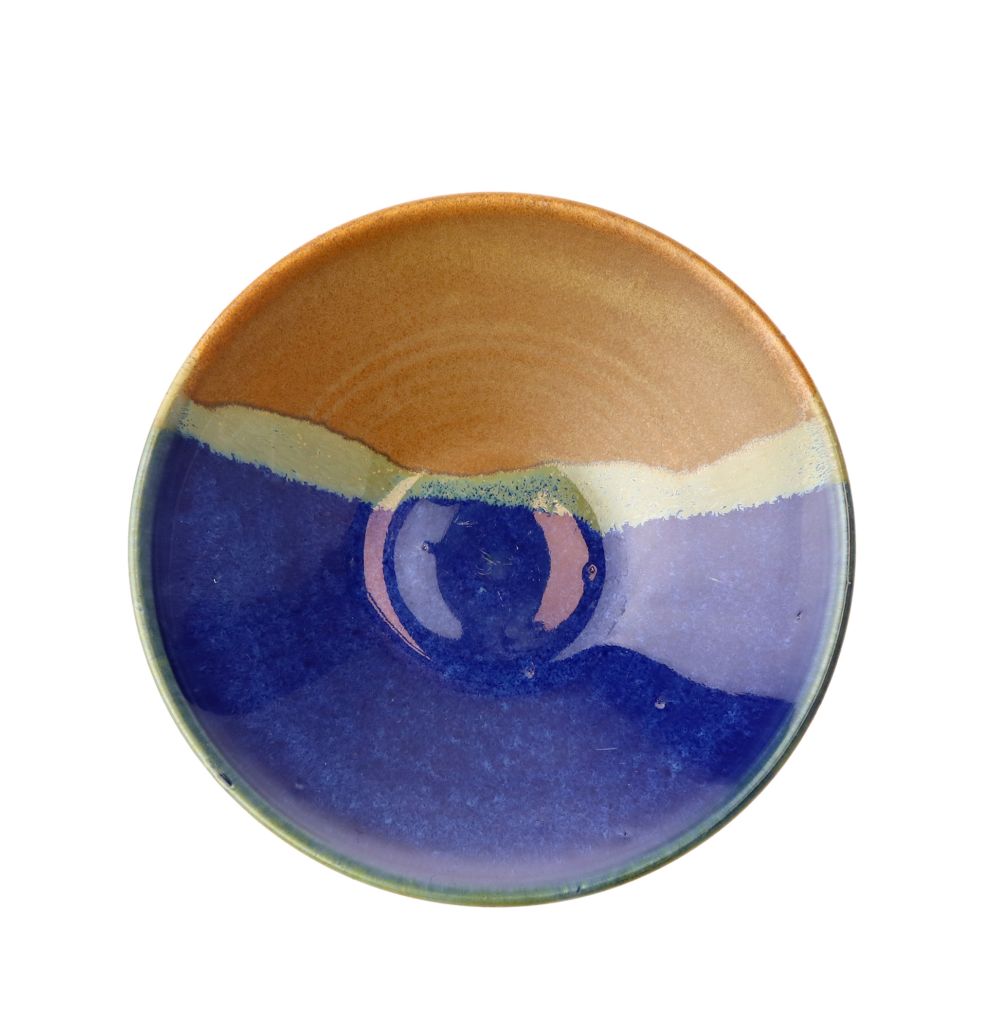 Farfurie din porțelan în nuanțe de maro și albastru marin, unicate, realizate manual.