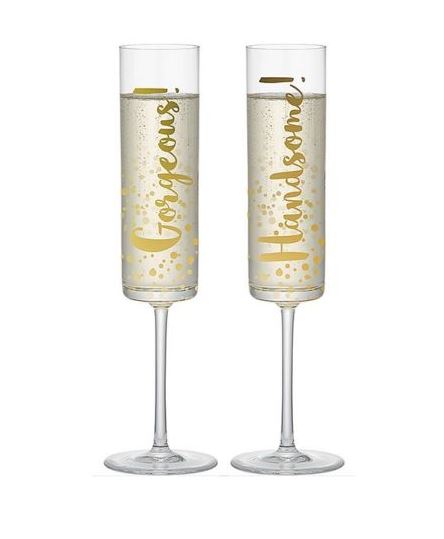 Paharele de șampanie "Gorgeous și Handsome" sunt realizate din sticlă rezistentă și au un model discret, fiind ideale pentru o seară specială.